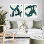 Shop Green Bow I (Square) Wall Art Print and update your wall decor at home easily with this green toned modern abstract themed wall artwork print from our hand painted prints collection.