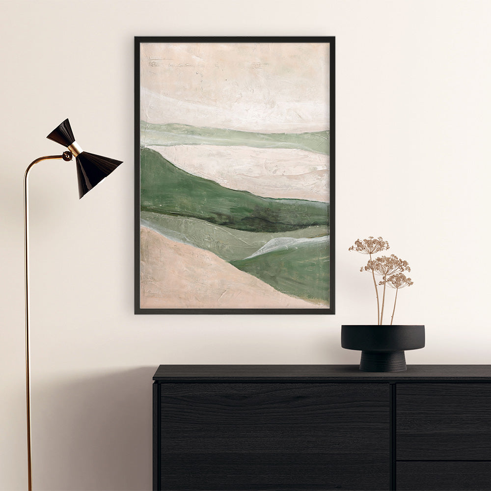 Shop Green Field Art Print by Design Fabrikken and update your wall decor at home easily with this vast field of green and brown artwork from our hand painted print collection.