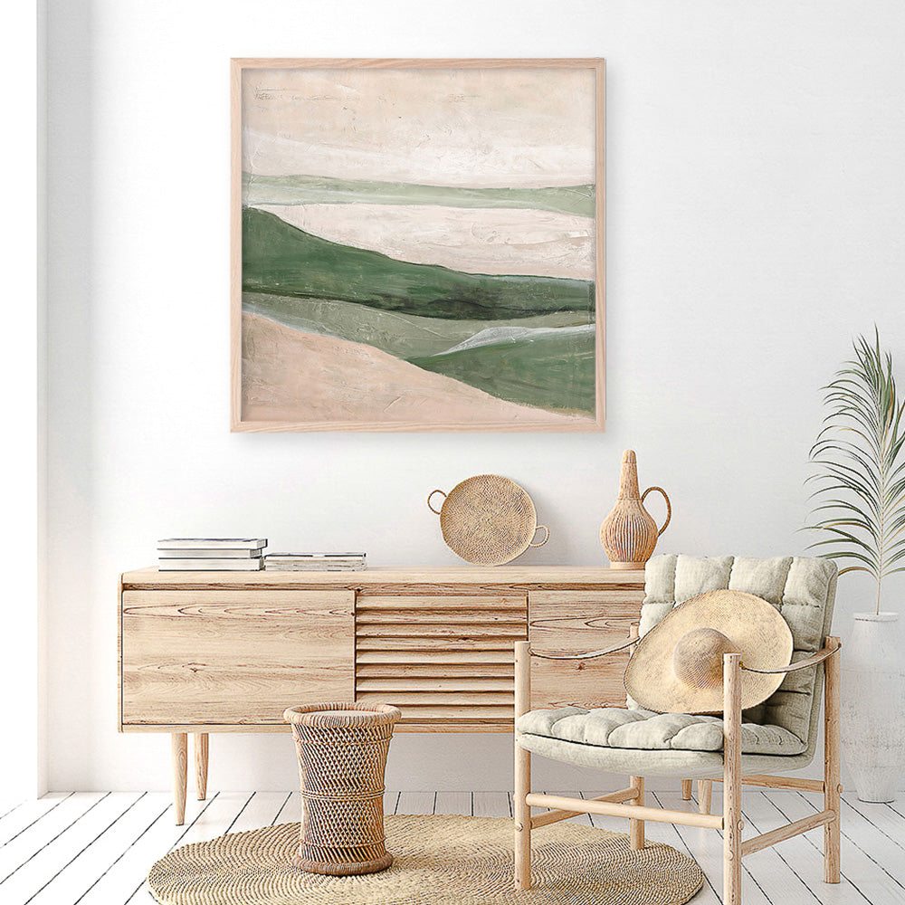 Shop Green Field (Square) Art Print by Design Fabrikken and update your wall decor at home easily with this vast field of green and brown square artwork from our hand painted print collection.