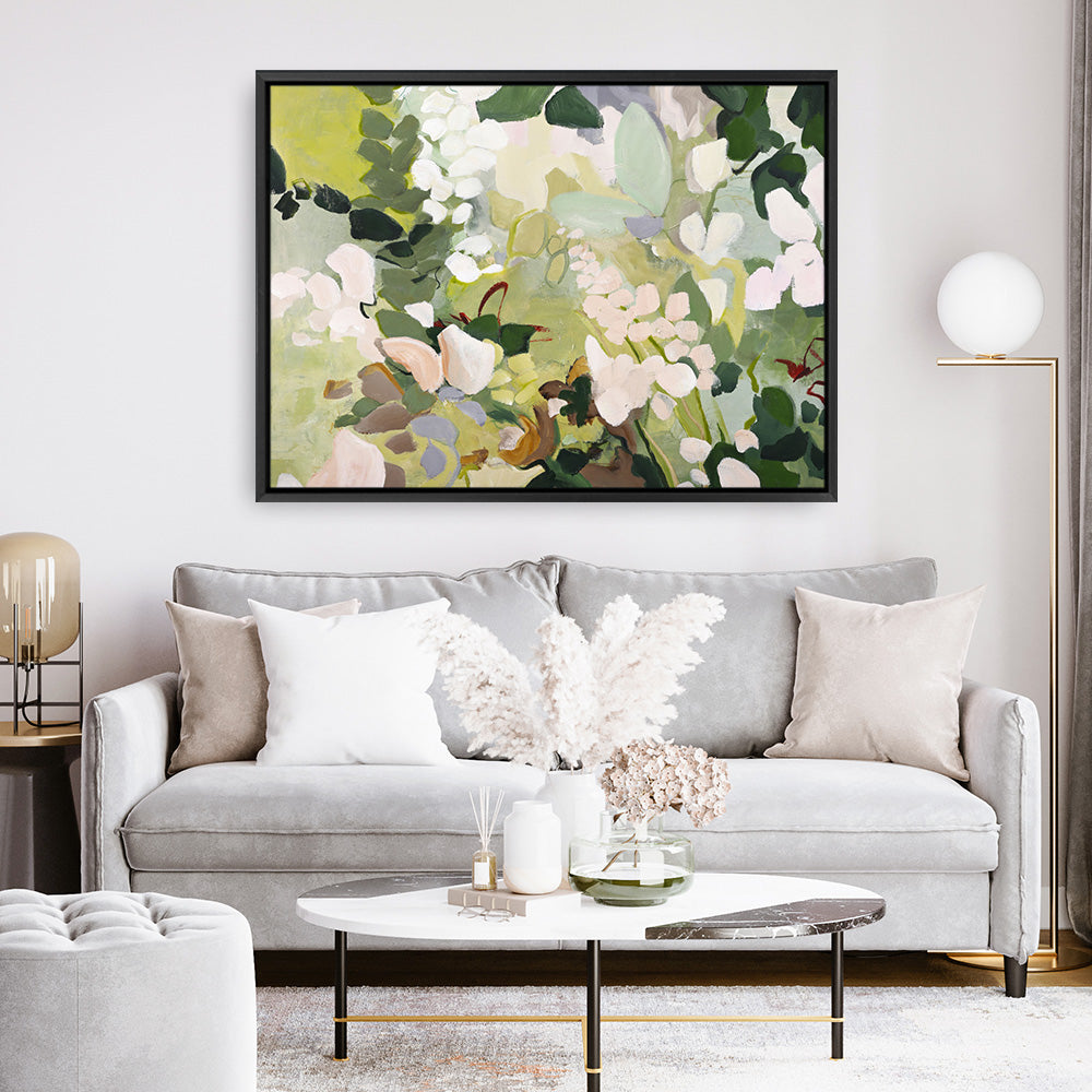 Shop Green Garden Variation Canvas Print by Design Fabrikken and update your wall decor at home easily with this botanical greens and white artwork from our hand painted canvas print collection.
