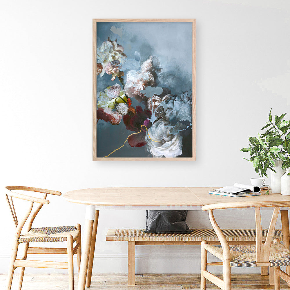 Shop Haute Couture Blue Art Print by Design Fabrikken and update your wall decor at home easily with this moody floral bouquet artwork from our hand painted print collection.