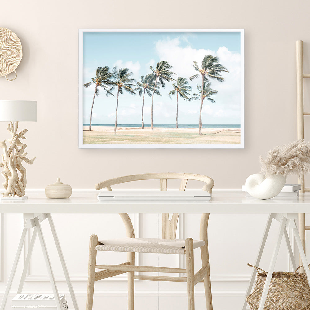 Shop Hawaiian Palm Trees Art Print by Elena Chukhlebova and update your wall decor at home easily with this breezy beach view artwork from our hand painted print collection.