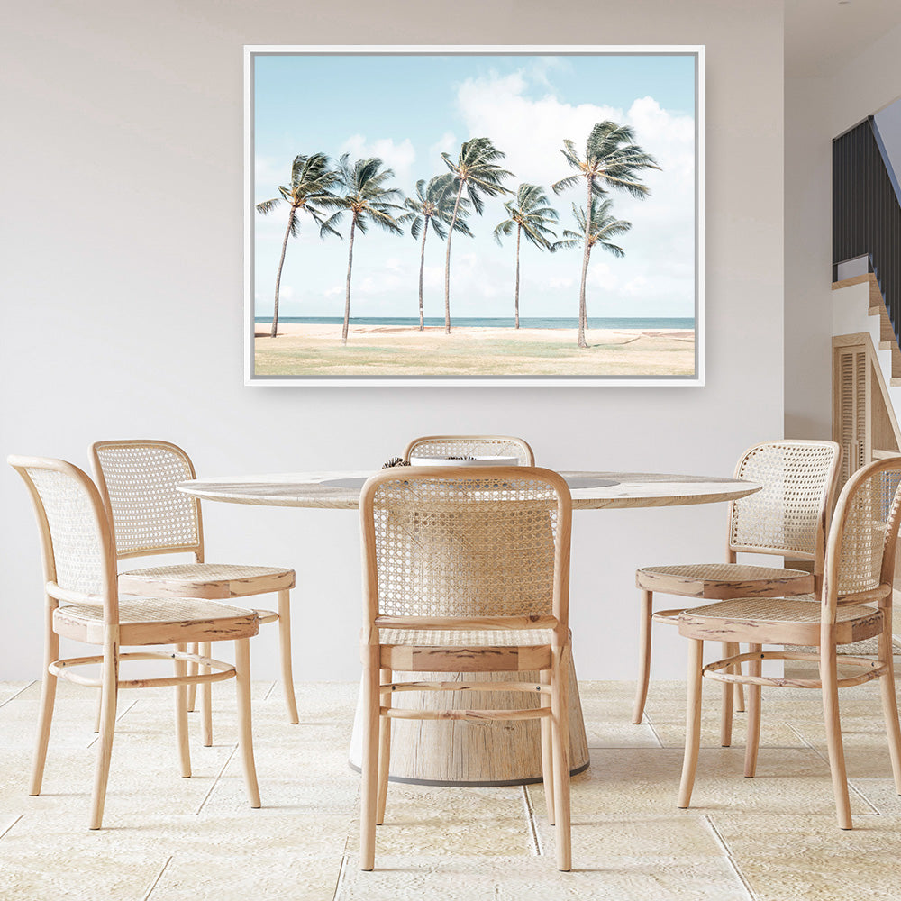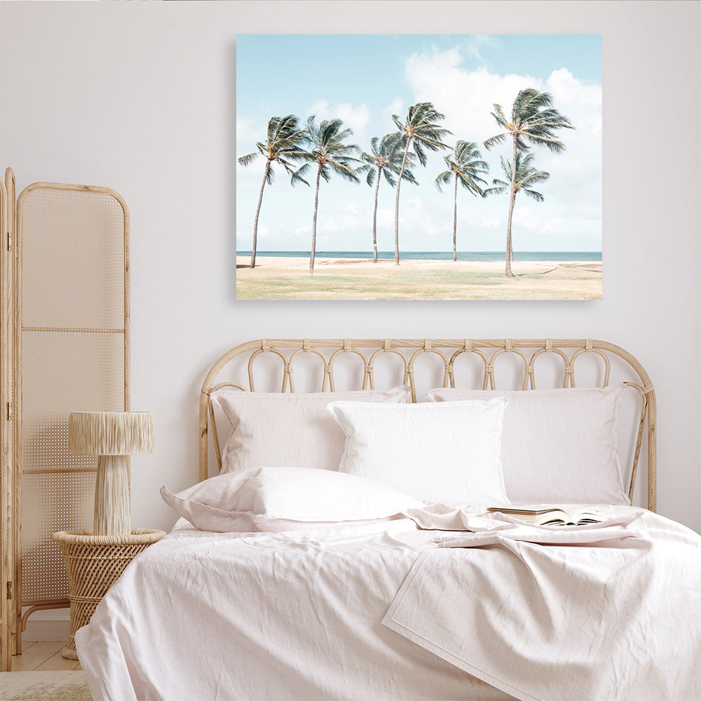 Shop Hawaiian Palm Trees Canvas Print by Elena Chukhlebova and update your wall decor at home easily with this breezy beach view artwork from our hand painted canvas print collection.