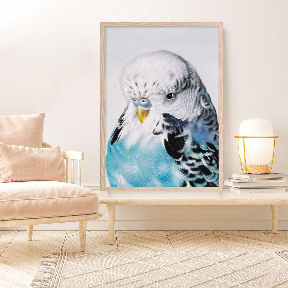 Shop Henry The Budgerigar Art Print by The Print Emporium and update your wall decor at home easily with this artwork print from our hand painted print collection.