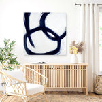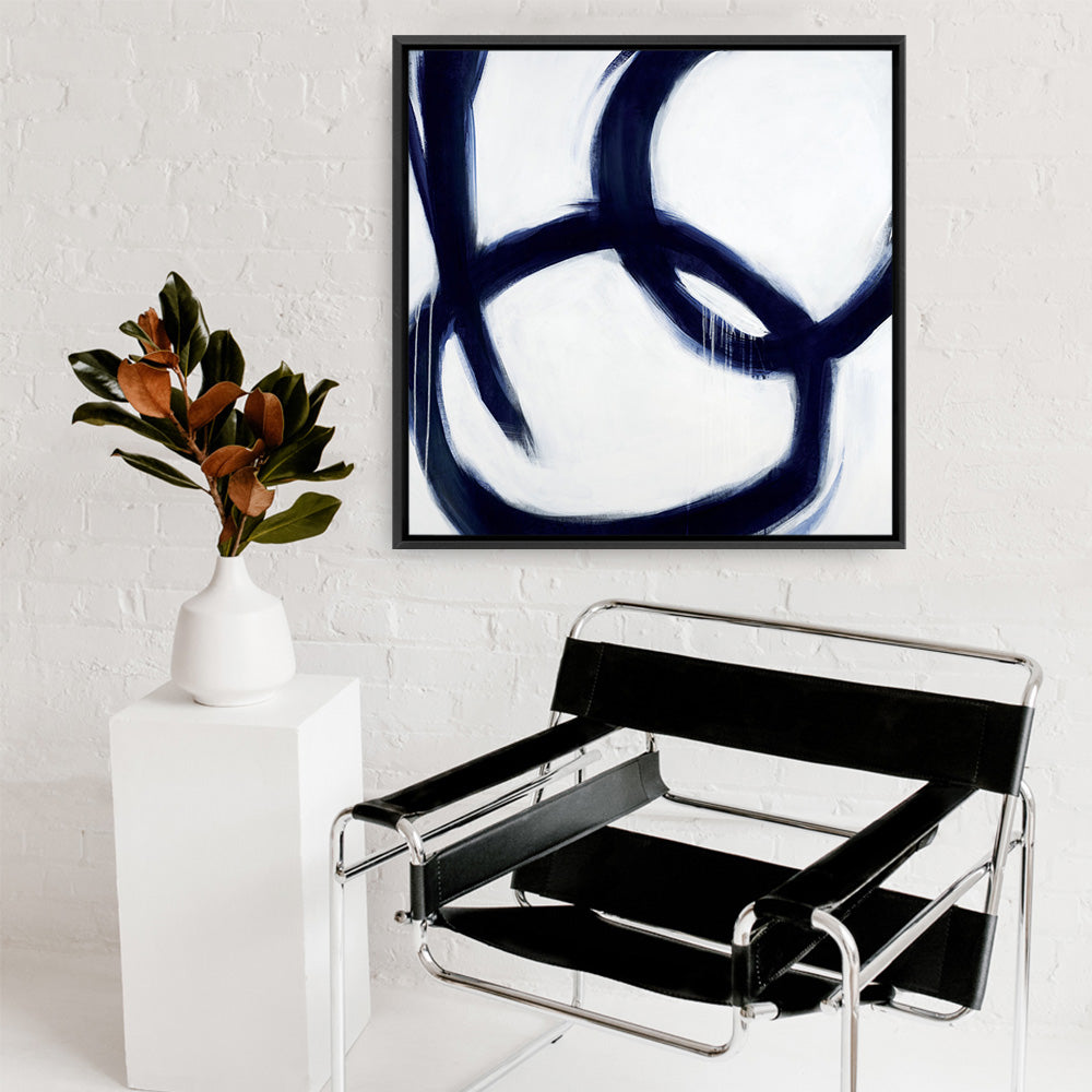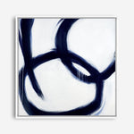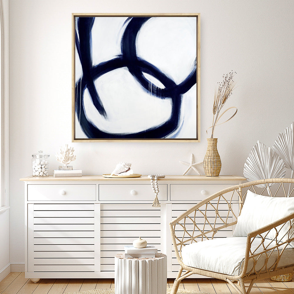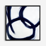 Shop Hoop Dreams (Square) Canvas Print by Liz Jardine and update your wall decor at home easily with this white and navy blue toned abstract themed from our hand painted print collection.