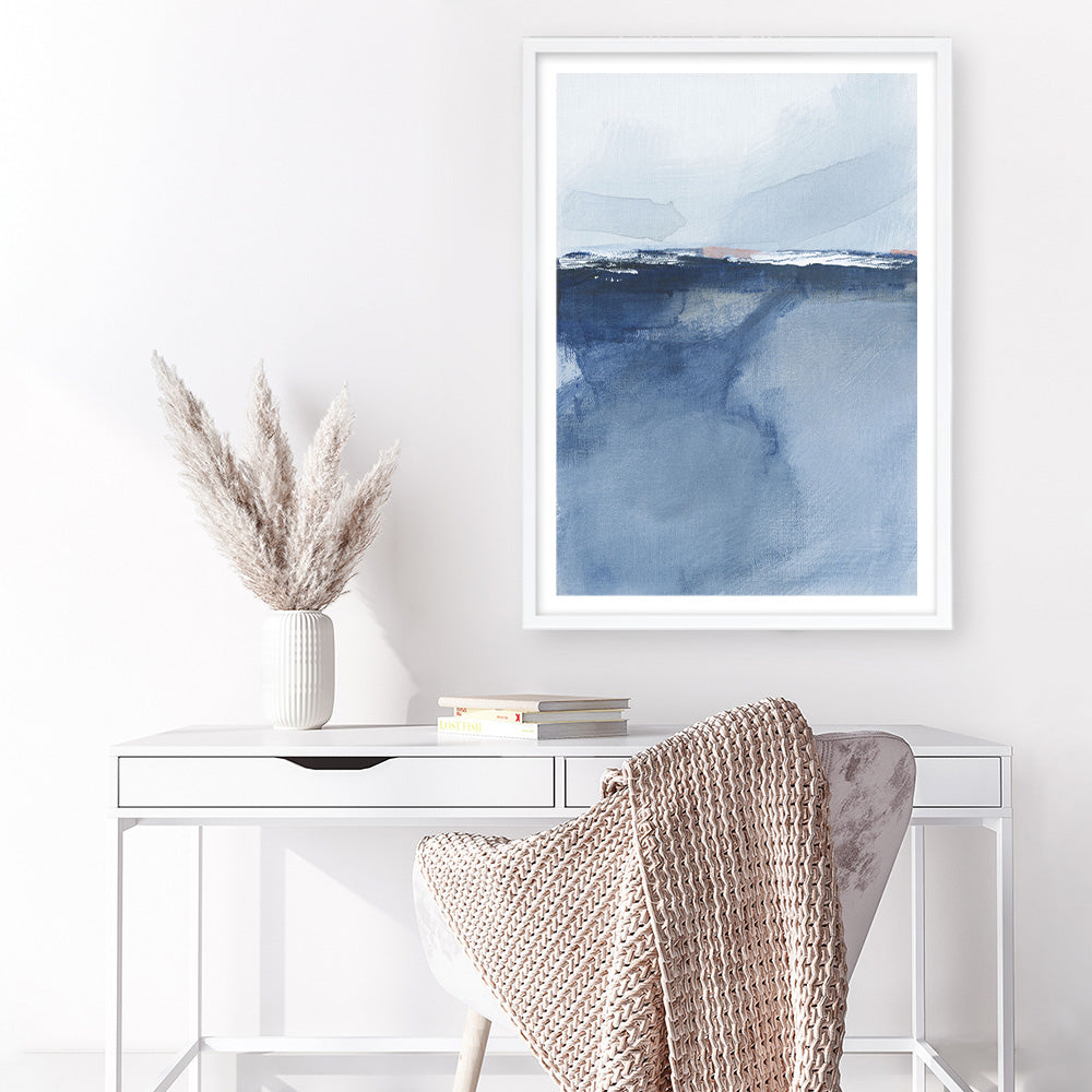 Shop Horizon 38 Art Print by M. Gloria Hunter and update your wall decor at home easily with this blue horizon abstract artwork from our hand painted print collection.