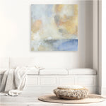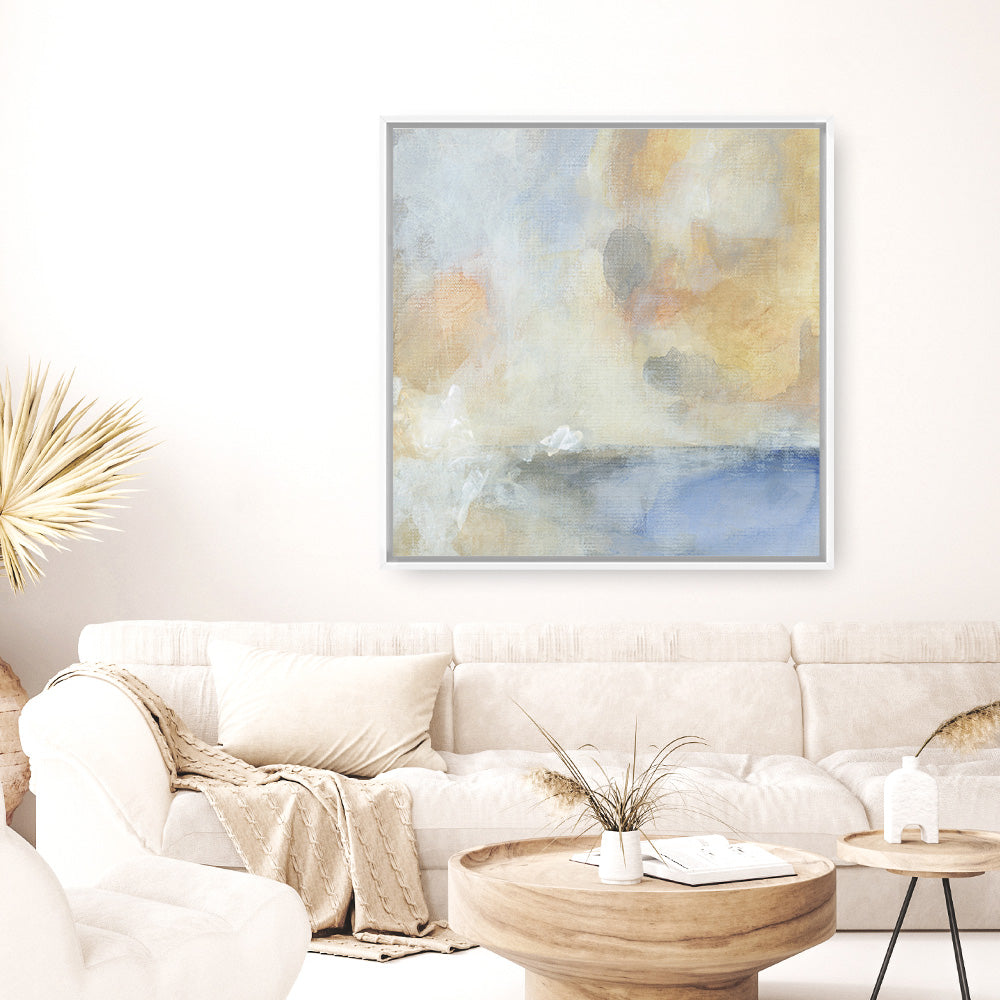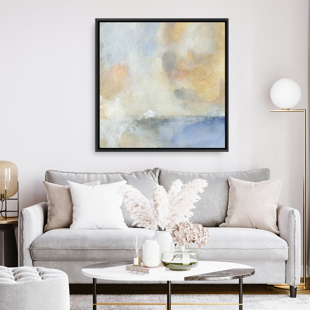 Shop Horizon 58 (Square) Canvas Print by M. Gloria Hunter and update your wall decor at home easily with this sunny coastal view square artwork from our hand painted canvas print collection.