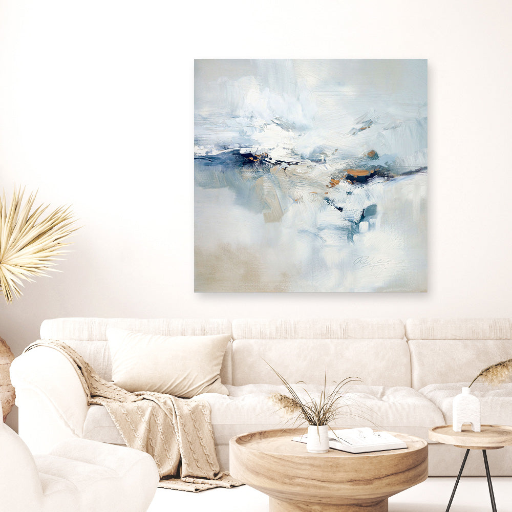 Shop Icy Chill (Square) Canvas Print by Rebecca Fox and update your wall decor at home easily with this wintry scene square artwork from our hand painted canvas print collection.