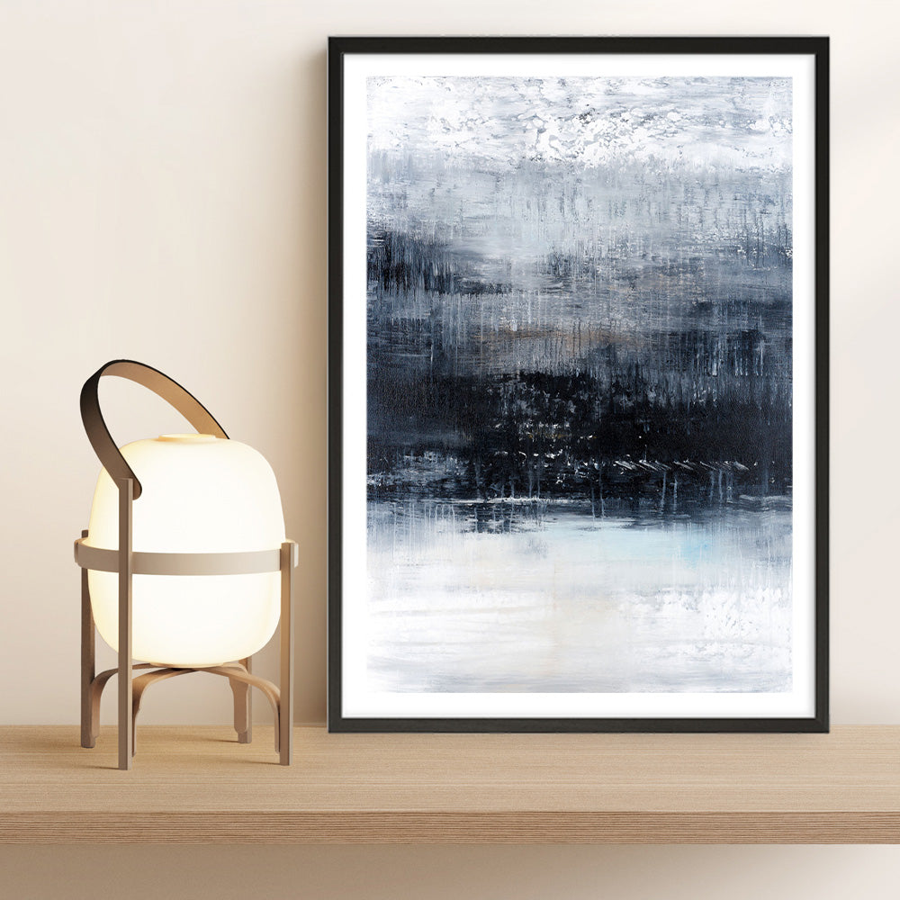 Shop Indigo Night Art Print by Radek Smach and update your wall decor at home easily with this moody black and navy artwork from our hand painted print collection.