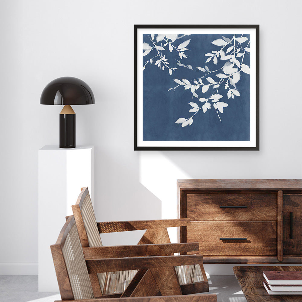 Shop Indigo Sky I (Square) Wall Art Print by Isabelle Z and update your wall decor at home easily with this blue and white botanical themed wall artwork print from our hand painted prints collection.