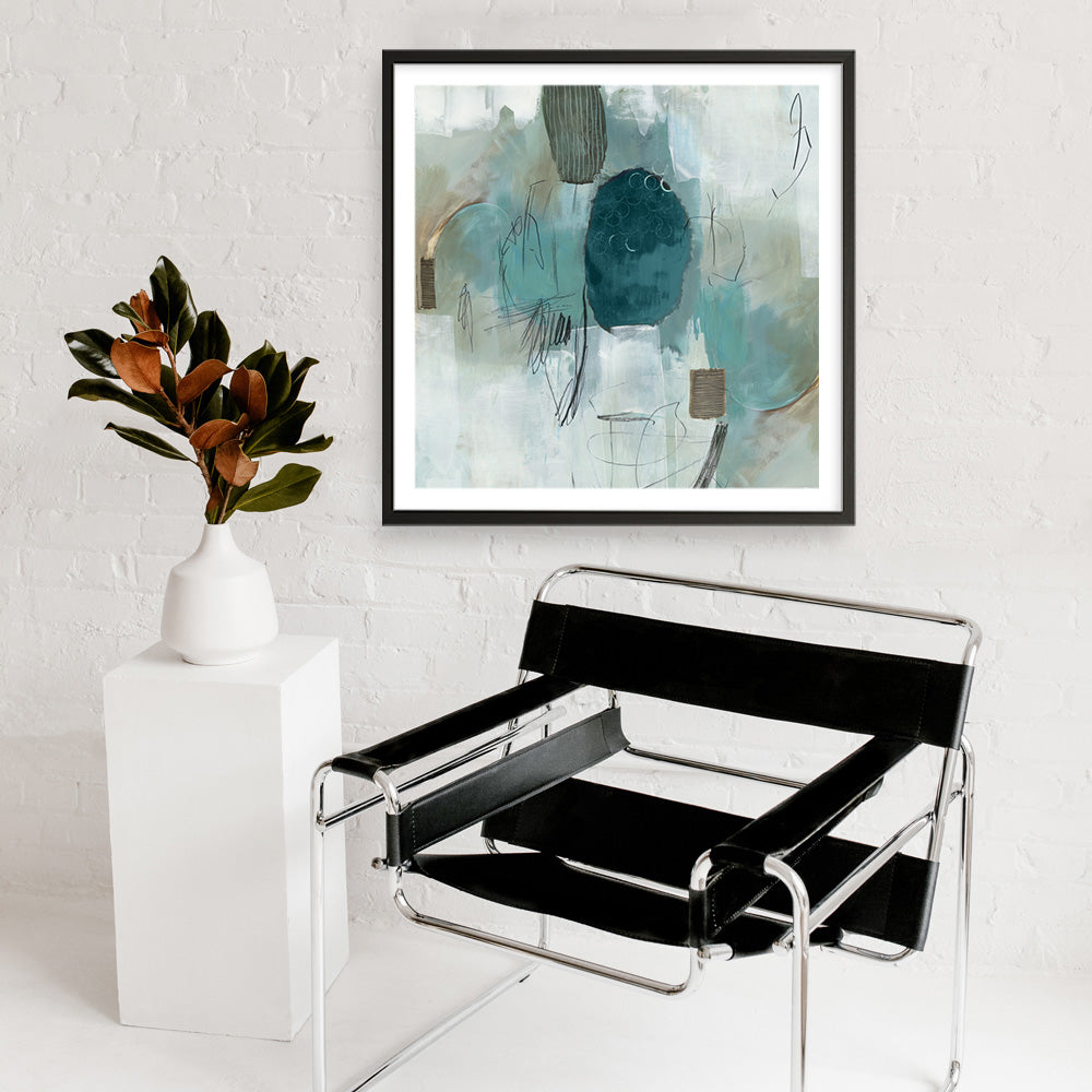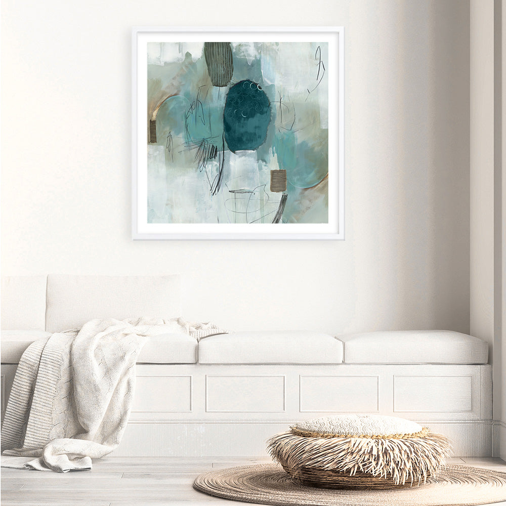 Shop Internal Reflection (Square) Wall Art Print and update your wall decor at home easily with this aqua blue toned abstract themed wall artwork print from our hand painted prints collection.