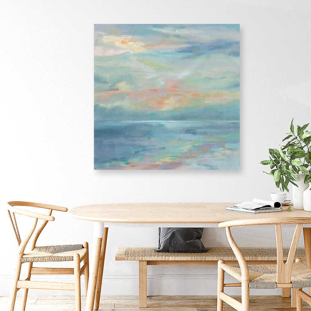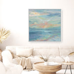 Shop June Morning by the Sea (Square) Canvas Wall Art Print by Silvia Vassileva and update your wall decor at home easily with this colourful coastal themed abstract stretched framed artwork from our hand painted canvas print collection.
