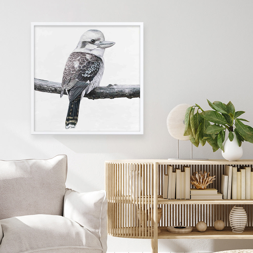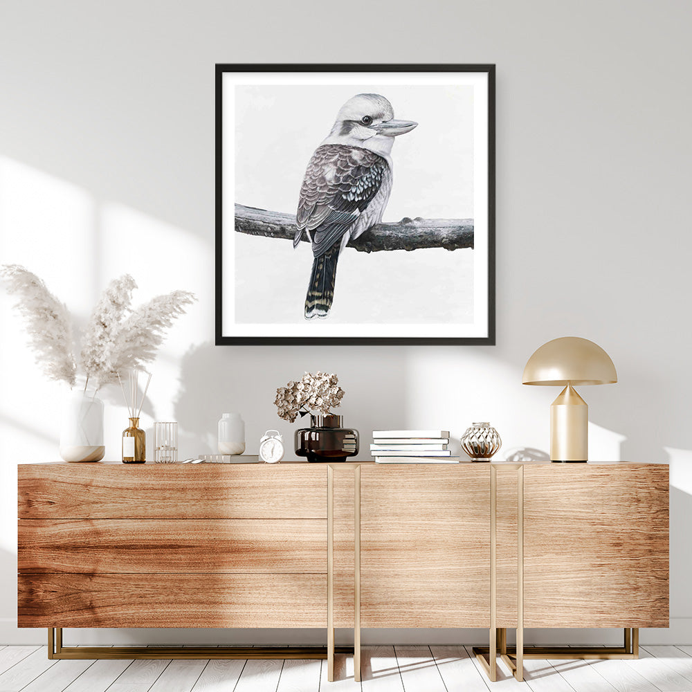 Shop Kookaburra On A Branch (Square) Art Print by The Print Emporium and update your wall decor at home easily with this artwork print from our collection.