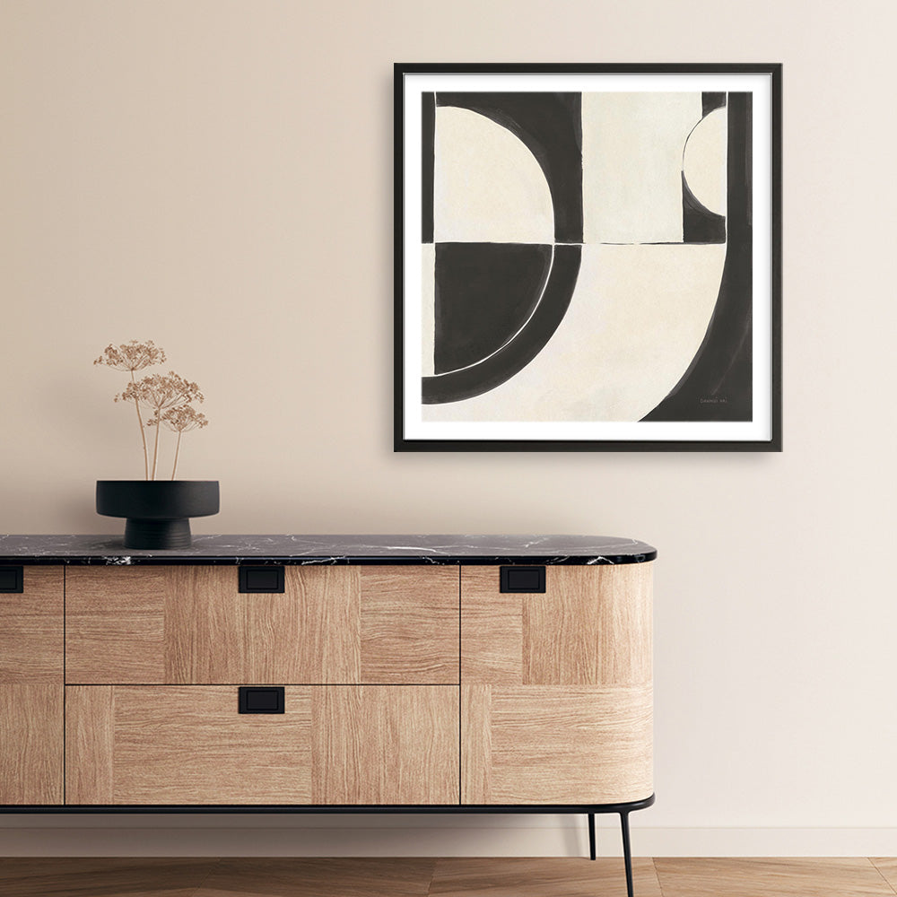 Shop Laid Back (Square) Art Print by Danhui Nai and update your wall decor at home easily with this black and beige geometric abstract themed artwork print from our hand painted prints collection.