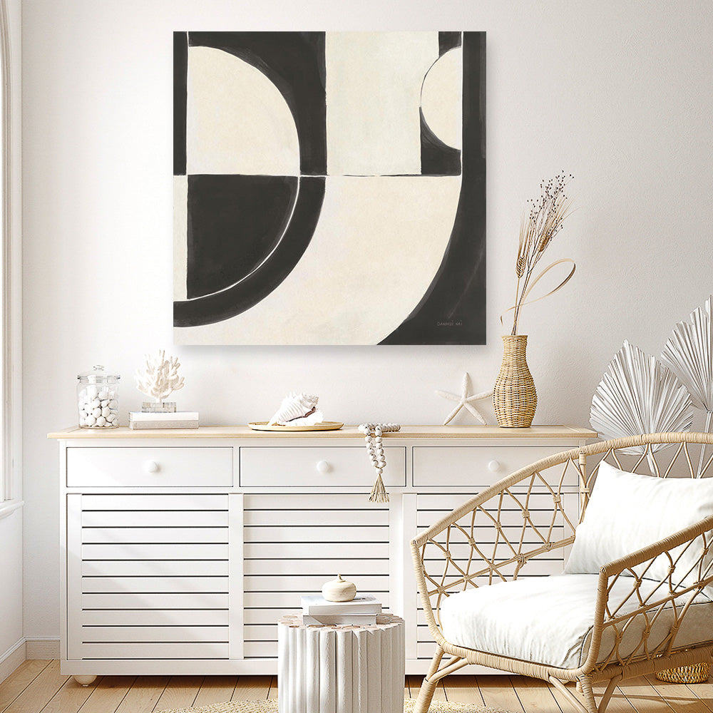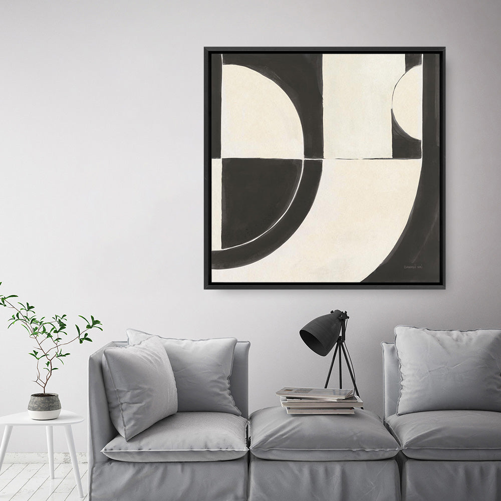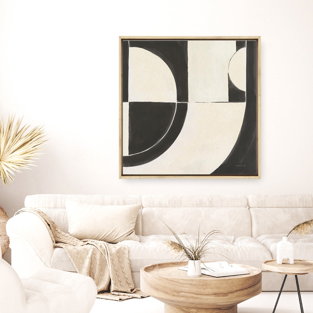 Shop Laid Back (Square) Canvas Wall Art Print by Danhui Nai and update your wall decor at home easily with this black and beige geometric abstract themed stretched framed artwork from our hand painted canvas print collection.