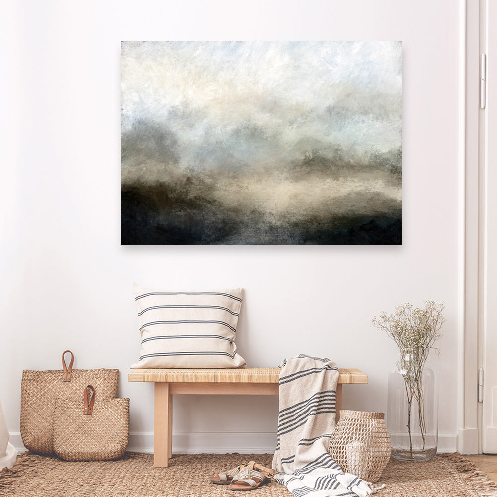 Shop Lake Mist Canvas Print and update your wall decor at home easily with this abstract cloudscape stretched canvas wall art print from our hand painted print collection by United Kingdom based artist Dan Hobday, now available on The Print Emporium. Dan creates artwork using a mixture of mediums including acrylic paints, inks, digital and also mixed media. All original artworks were designed and hand created by Dan and then digitised, and now available to purchase as reprints on paper or canvas and with framing options available.