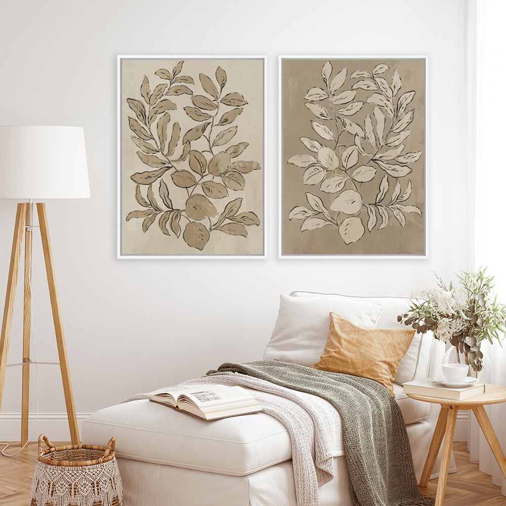 Shop Leaves Sketches I Canvas Wall Art Print by Asia Jensen and update your wall decor at home easily with this brown toned botanical themed stretched framed artwork from our hand painted canvas print collection.