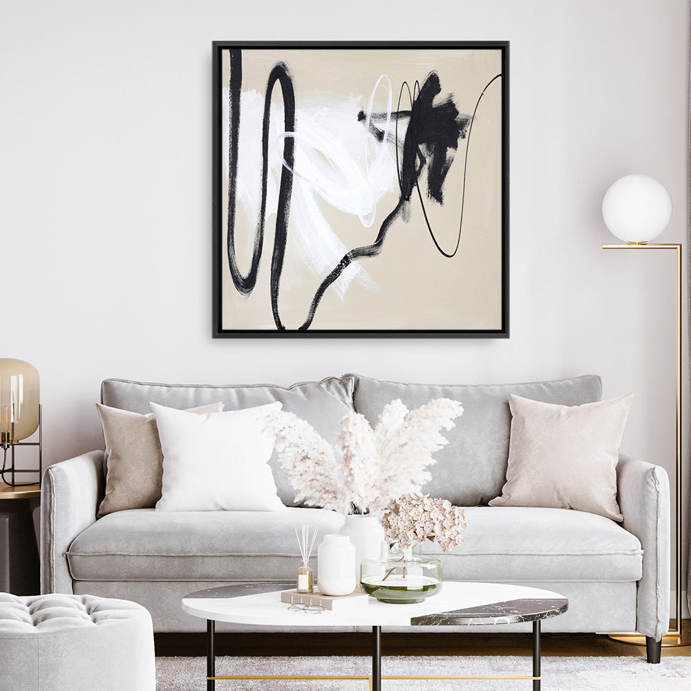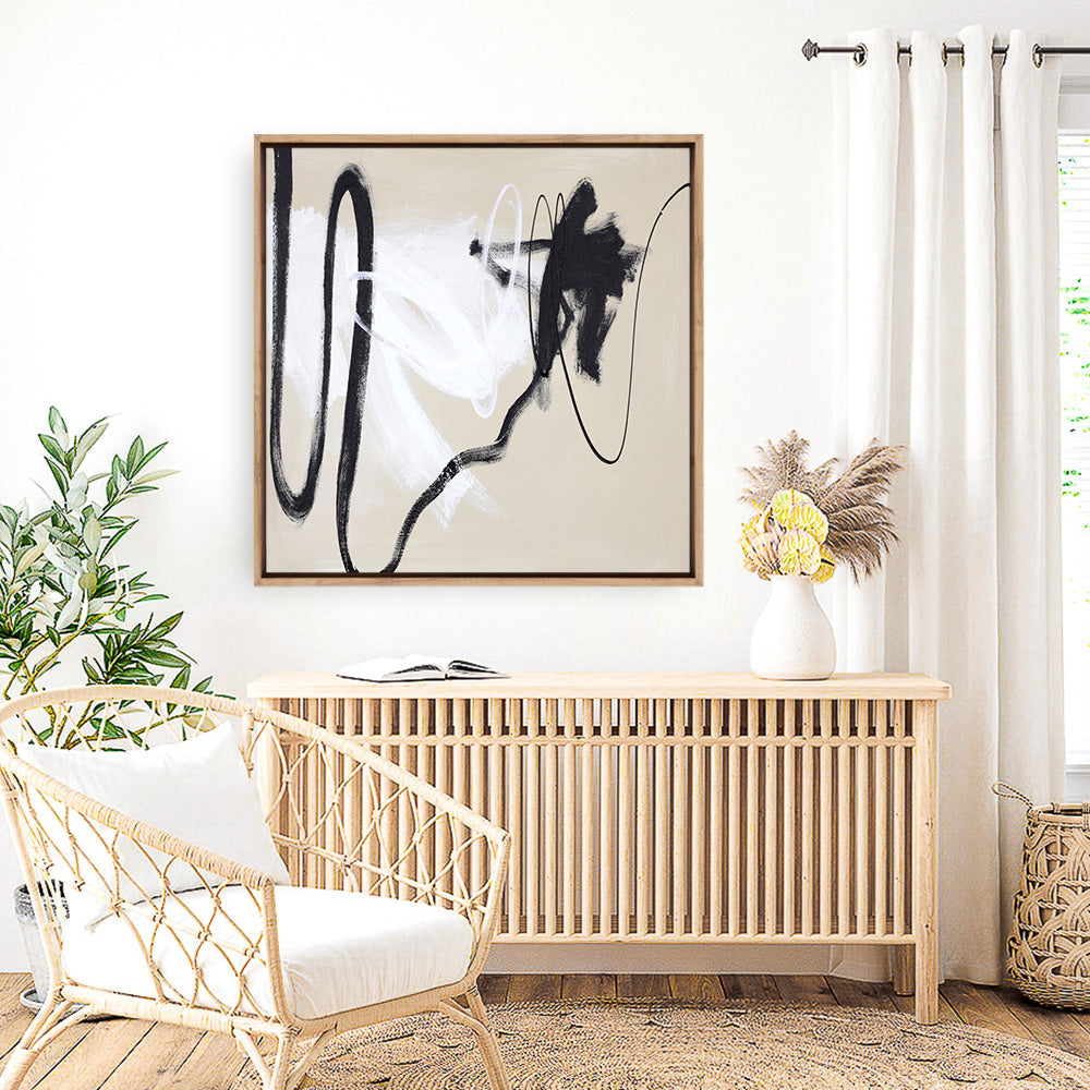 Shop Less But Better (Square) Canvas Print by Design Fabrikken and update your wall decor at home easily with this neutral minimalist square artwork from our hand painted canvas print collection.