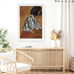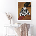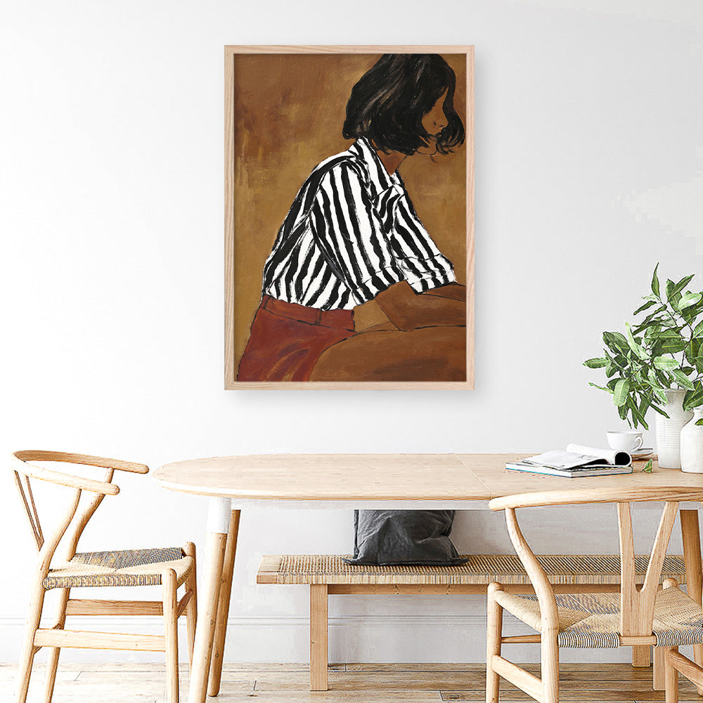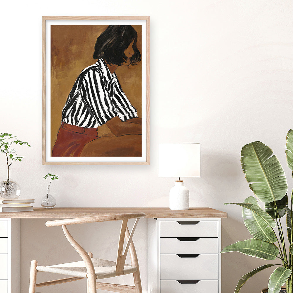 Shop Let it go Art Print by Design Fabrikken and update your wall decor at home easily with this woman in a striped black and white shirt artwork from our hand painted print collection.