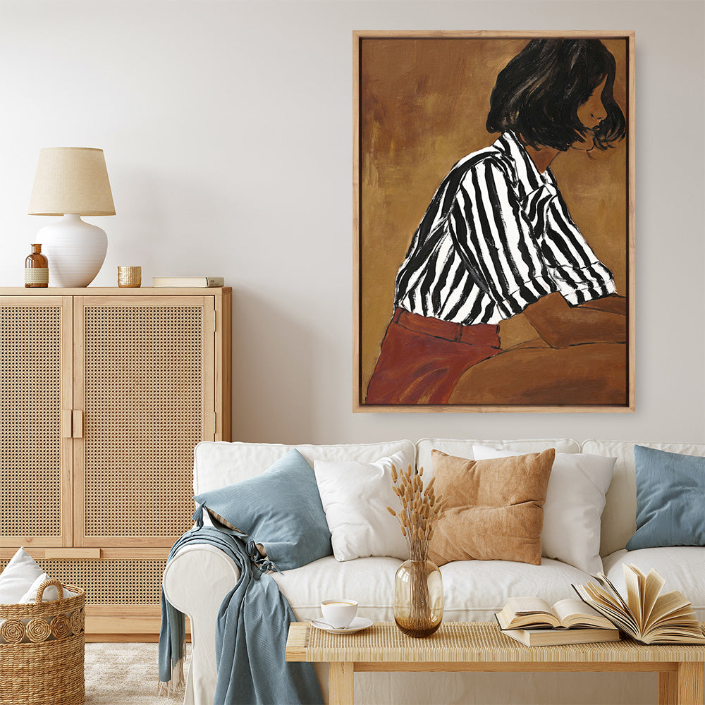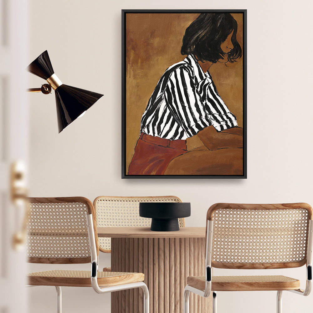 Shop Let it go Canvas Print by Design Fabrikken and update your wall decor at home easily with this woman in a striped black and white shirt from our hand painted canvas print collection.