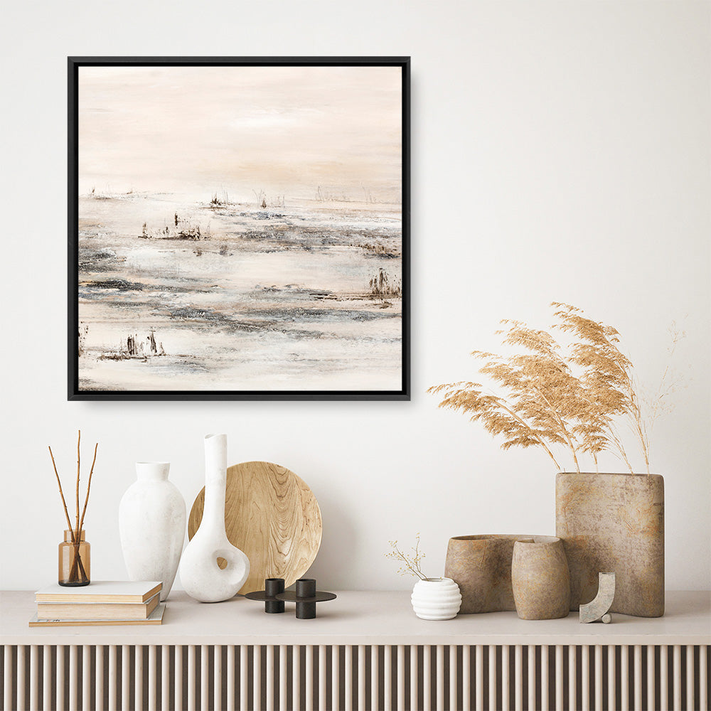 Shop Lifestyle Abstract 2 (Square) Canvas Print by Design Fabrikken and update your wall decor at home easily with this neutral minimalist square artwork from our hand painted canvas print collection.