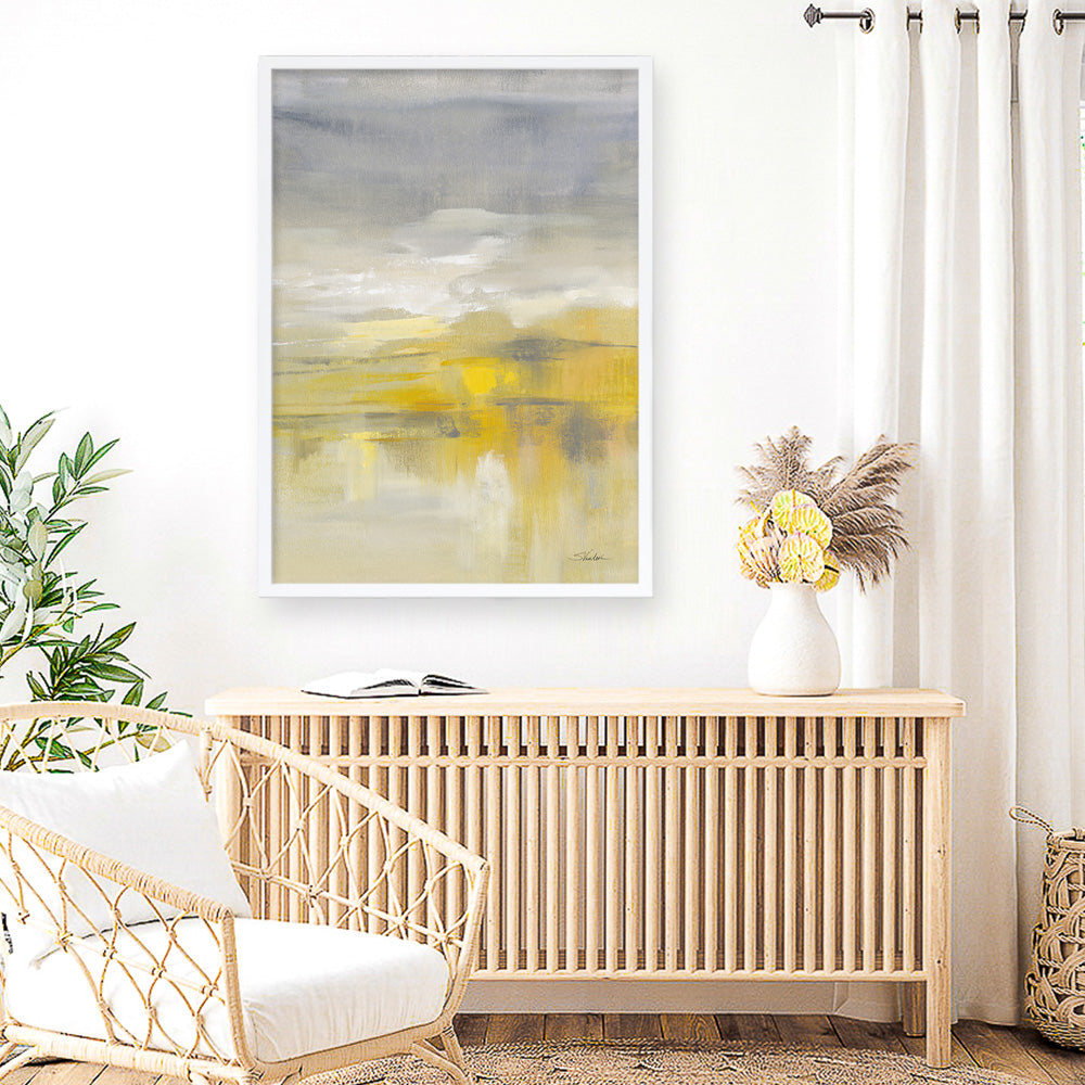 Shop Light After the Rain I Wall Art Print by Silvia Vassileva and update your wall decor at home easily with this yellow and grey toned abstract themed wall artwork print from our hand painted prints collection.