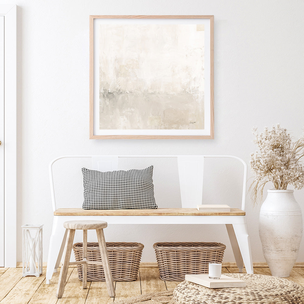 Shop Light Gray Morning Light (Square) Art Print by Courtney Prahl and update your wall decor at home easily with this neutral toned abstract themed from our hand painted print collection.