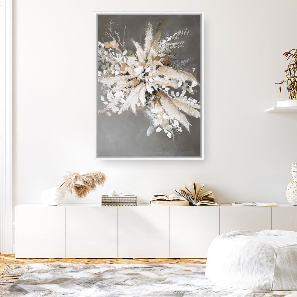 Shop Light Leaves 1 Canvas Print by Design Fabrikken and update your wall decor at home easily with this beautiful white arrangement from our hand painted canvas print collection.