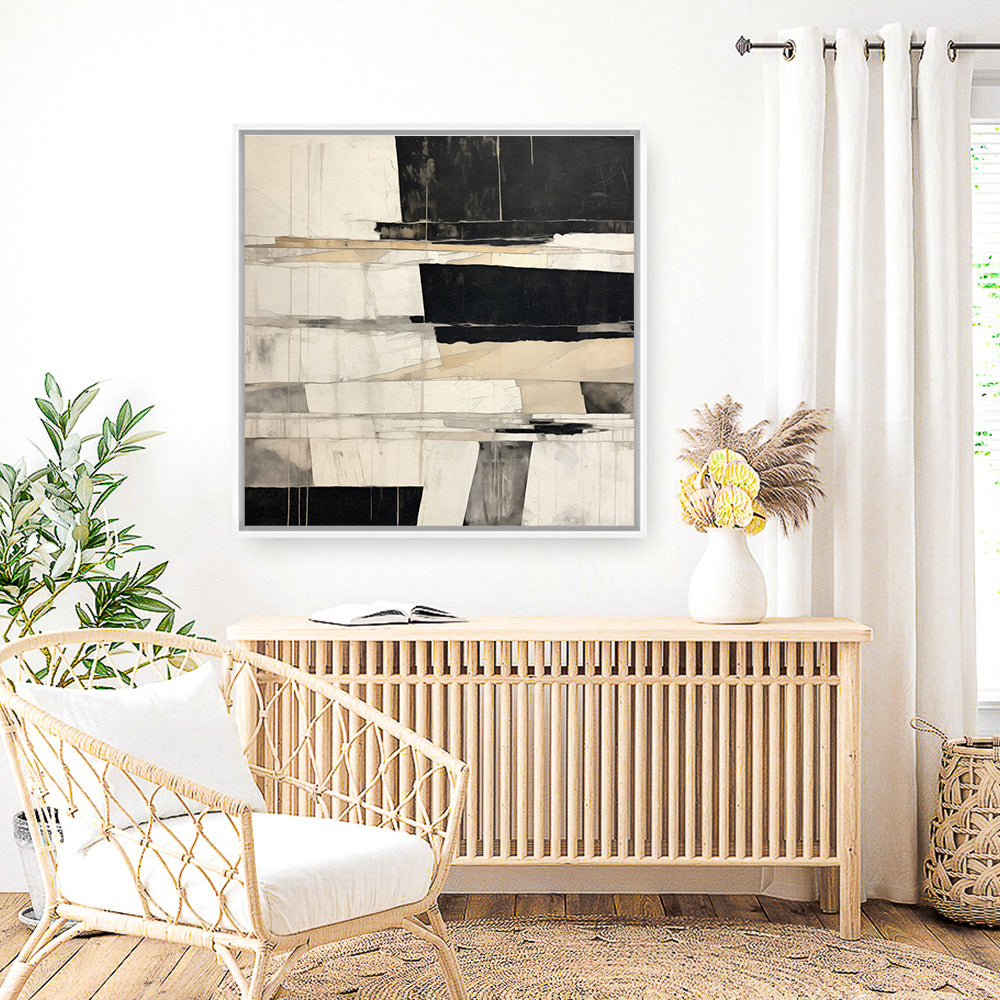 J.D. Lewis is a contemporary abstract artist known for his striking use of contrast and geometric precision. Working with a refined palette of black, white, cream, and muted tones, he builds textured layers that balance structure with expressive energy. His works often combine sharp lines with raw edges, creating a visual dialogue between order and spontaneity. Themes of identity, transformation, and reflection run throughout his compositions, offering viewers both impact and depth. From his studio, Lewis continues to push the boundaries of modern abstraction, producing pieces that are bold yet contemplative. Today, his art is sought after for its ability to bring sophistication and presence to contemporary interiors.