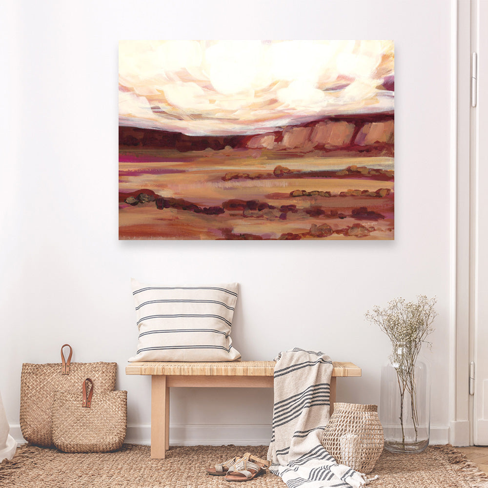Shop Mauve Mesa IIICanvas Print by Haley Knightenand update your wall decor at home easily with this beautiful desert landscape artwork from our abstract hand painted print collection.