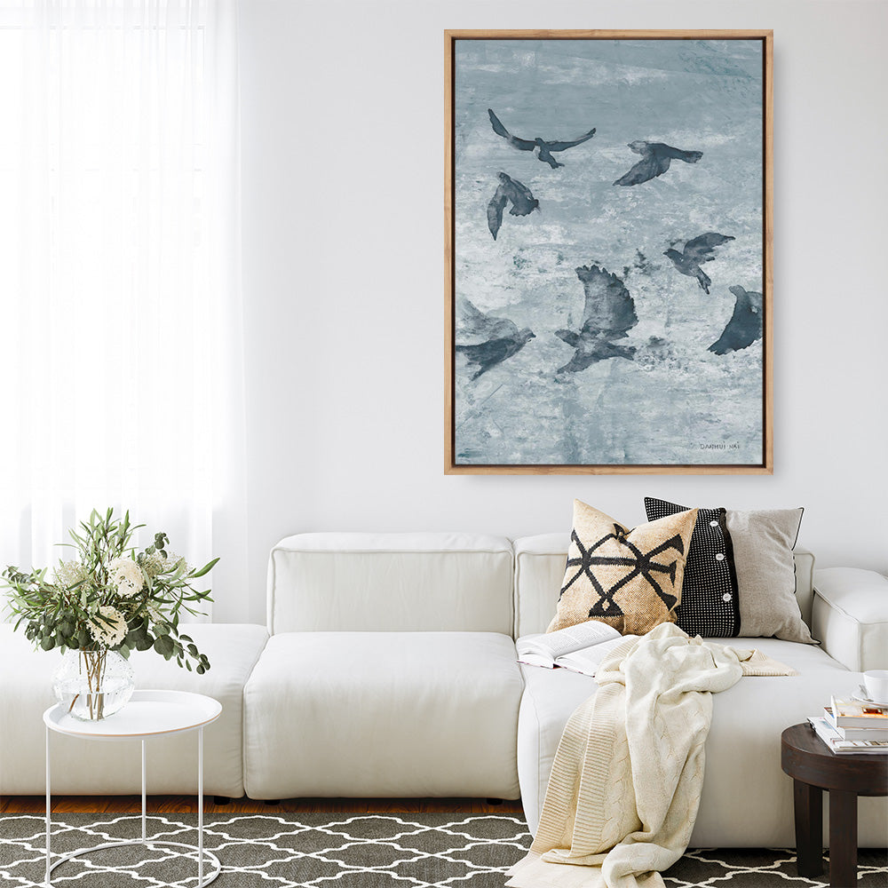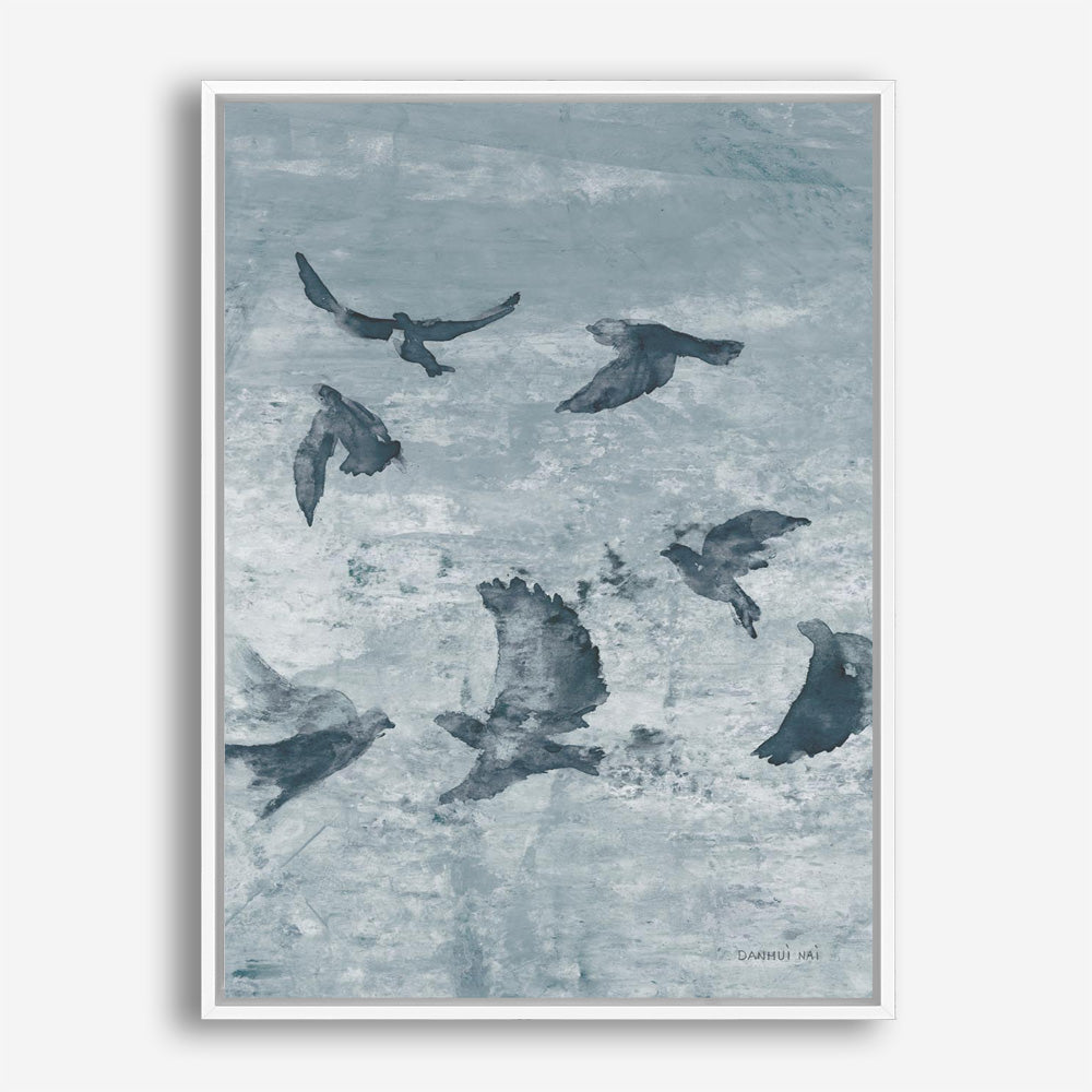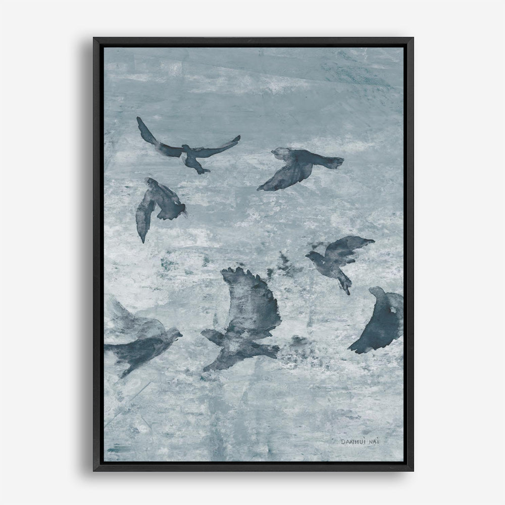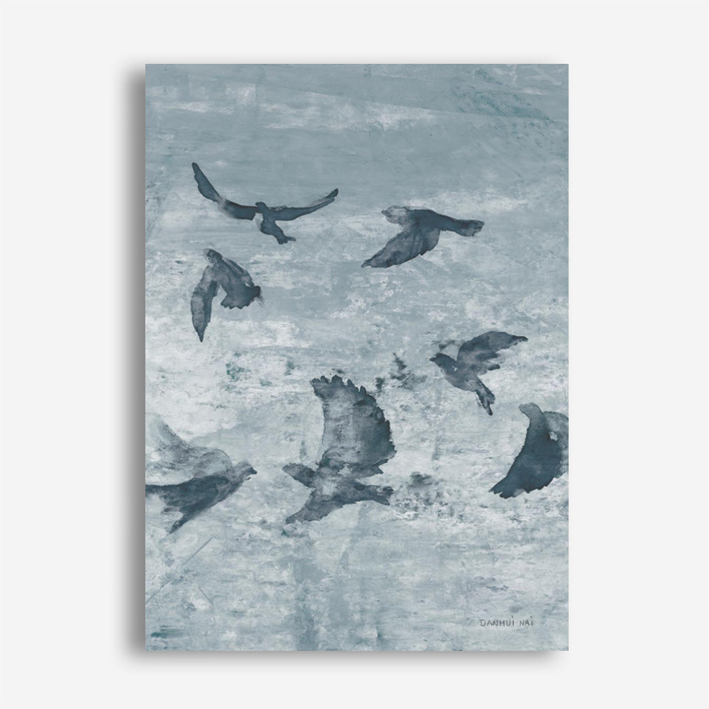 Shop Migration Blue Panel II Canvas Print by Danhui Naiand update your wall decor at home easily with this bird themed artwork from our abstract hand painted print collection.