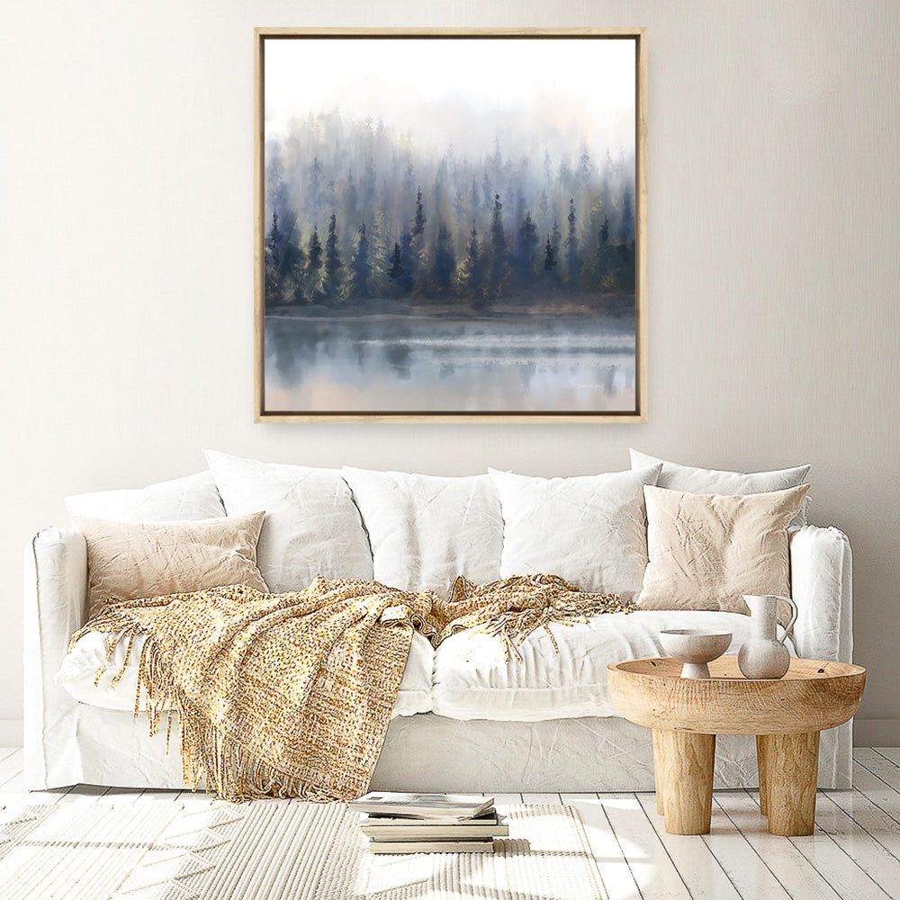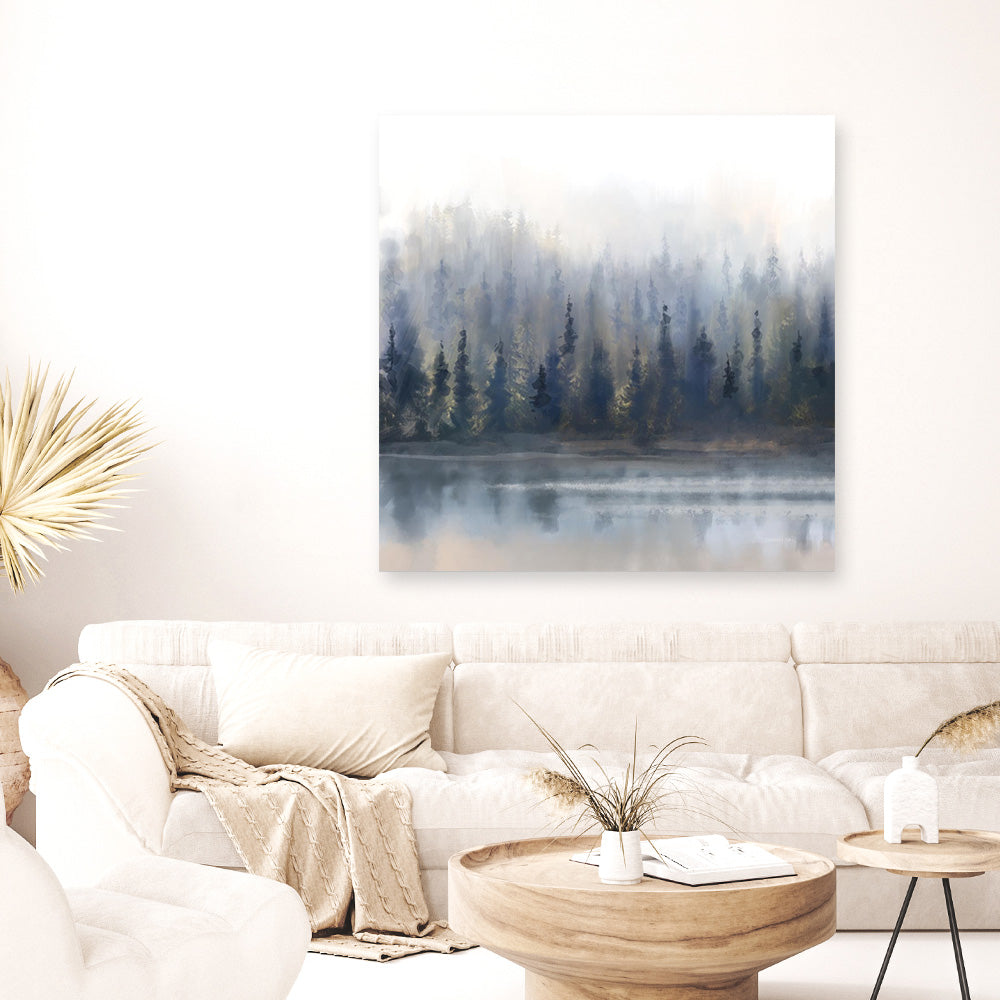 Shop Misty Forest in Gray and Gold (Square) Canvas Wall Art Print by Danhui Naiand update your wall decor at home easily with this black and gray winter forest landscape stretched framed artwork from our hand painted canvas print collection.