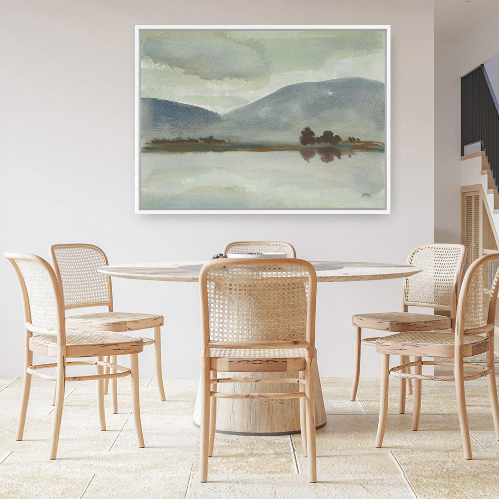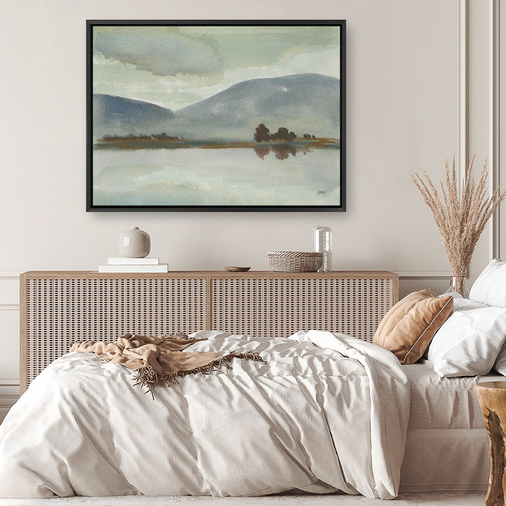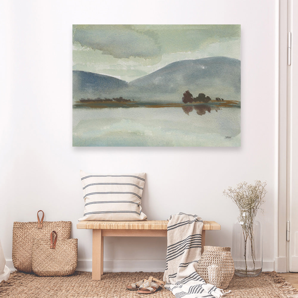 Shop Misty View Canvas Print by Carson Overstreet and update your wall decor at home easily with this painting of a misty lake from our abstract hand painted print collection.