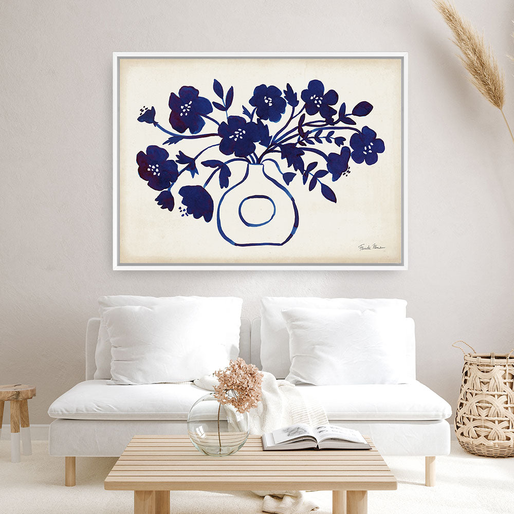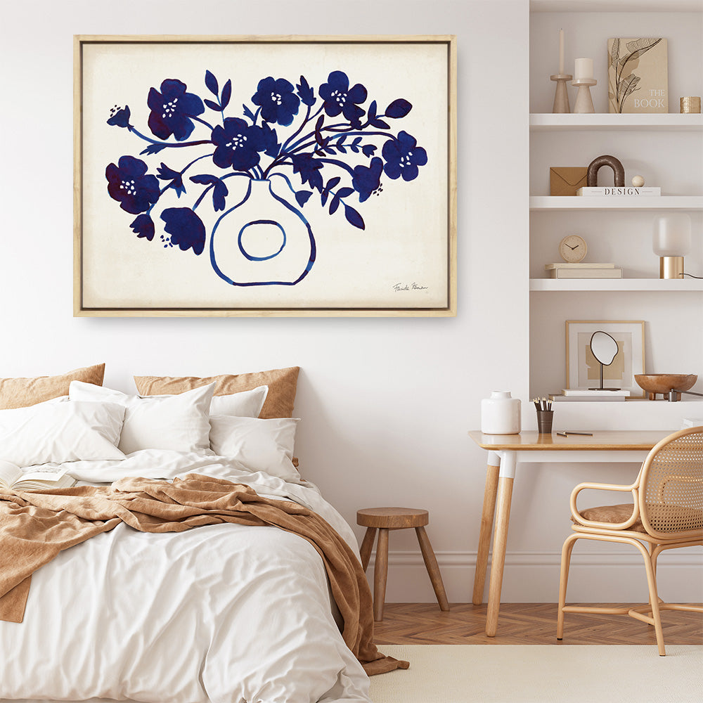 Shop Modern Blue II Canvas Print by Farida Zaman and update your wall decor at home easily with this navy blue flower vase themed artwork from our hand painted print collection.
