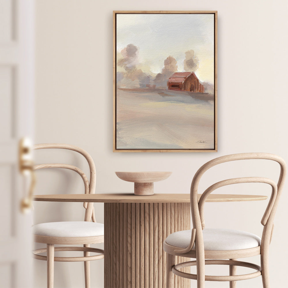 Shop Monochromatic Farm View II Canvas Print by Silvia Vassileva and update your wall decor at home easily with this neutral toned landscape from our abstract hand painted print collection.