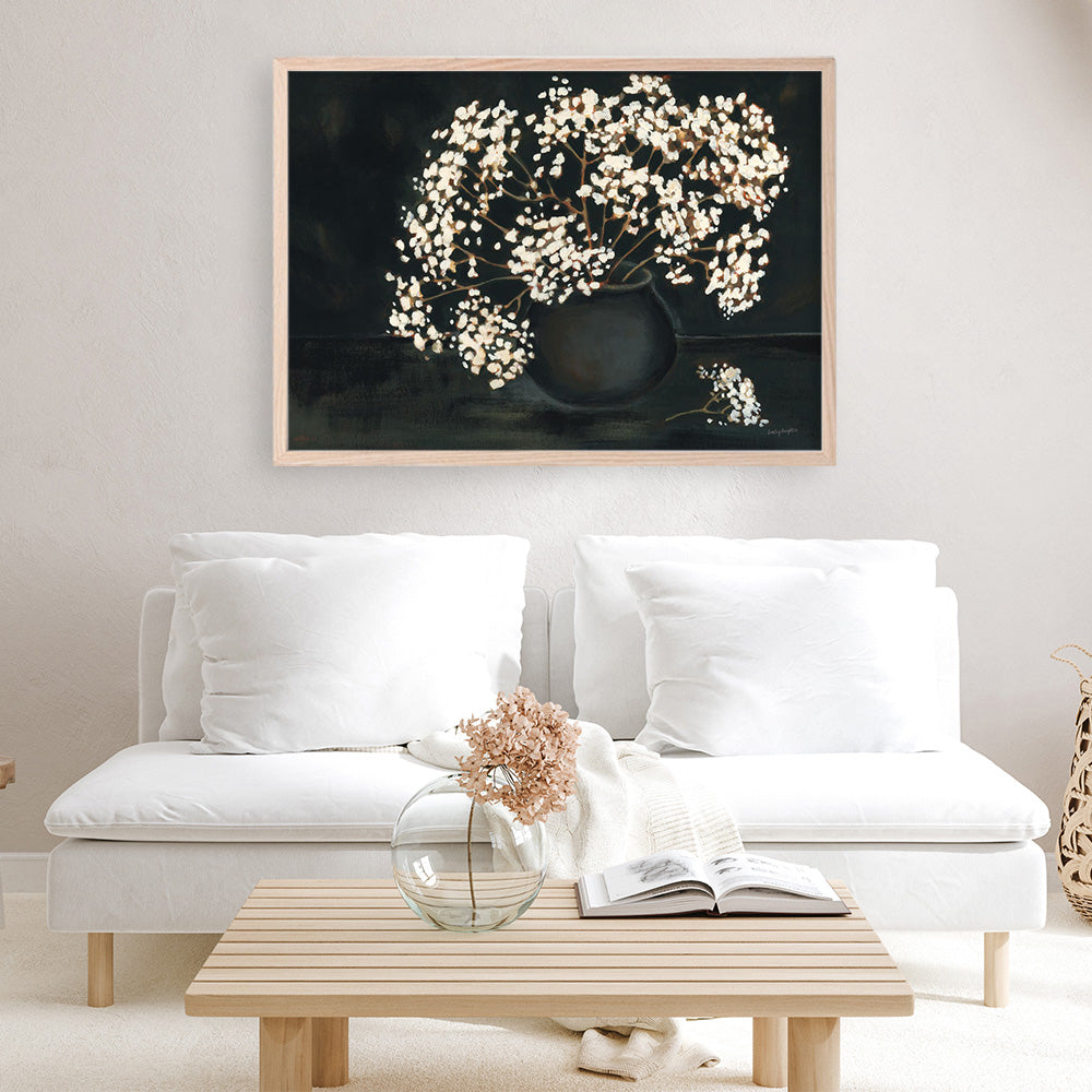 Shop Moody BabyArt Print by Haley Knightenand update your wall decor at home easily with this vase of baby's breath on black artwork from our abstract hand painted print collection.