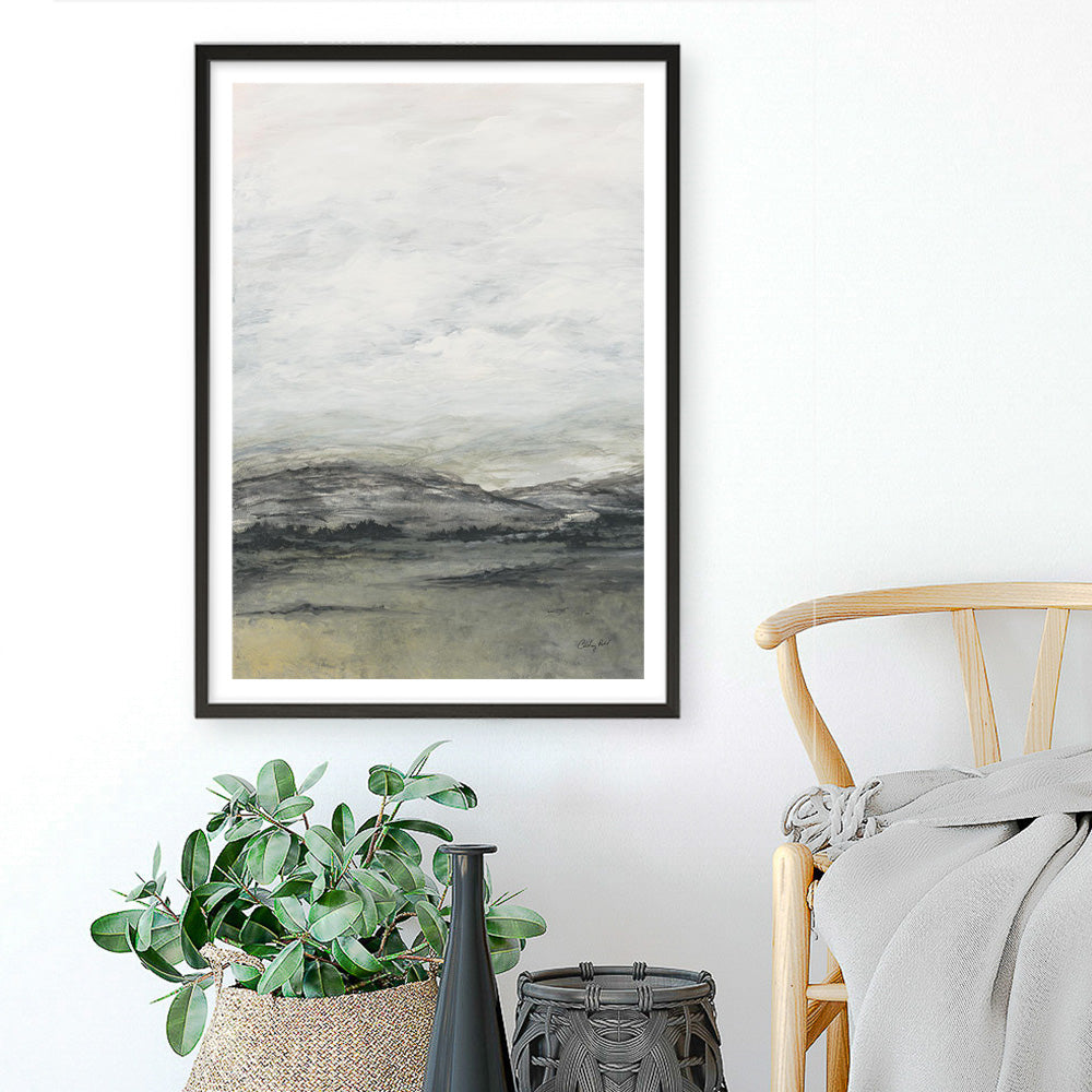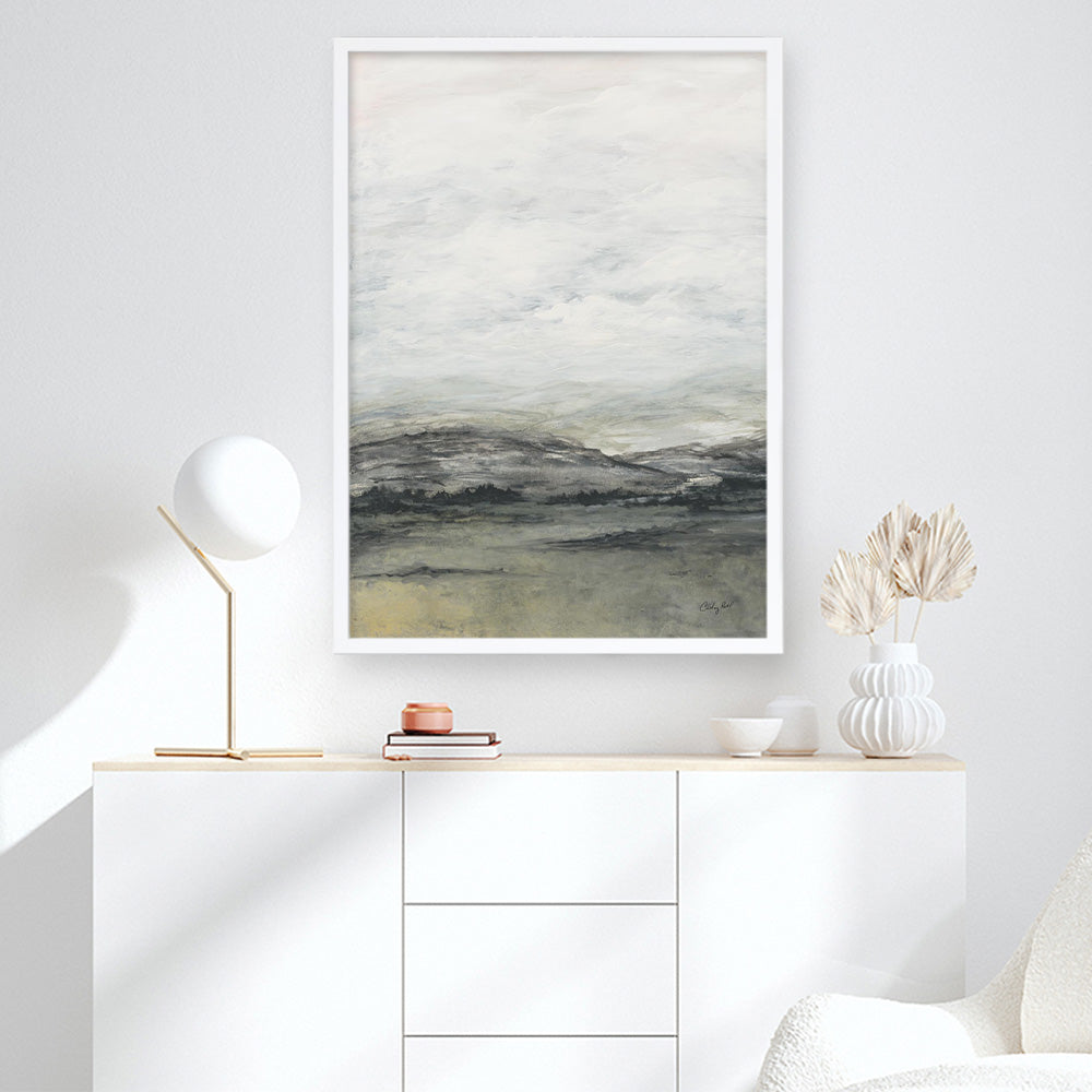 Shop Moody HillsArt Print by Courtney Prahland update your wall decor at home easily with this cloudy hill view artworkfrom our abstract hand painted print collection.