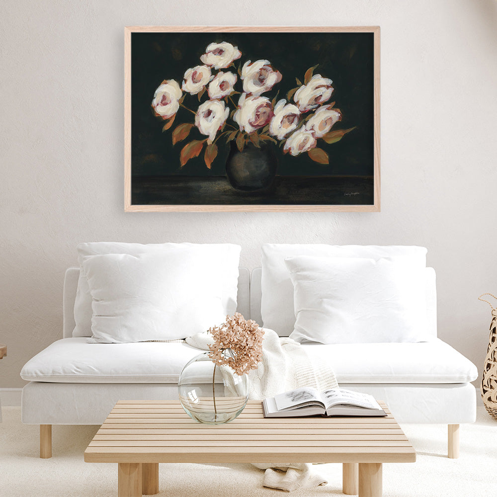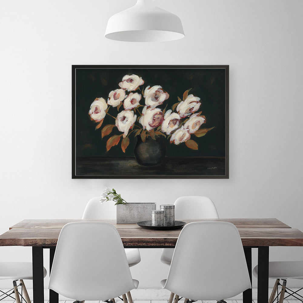 Shop Moody RosesArt Print by Haley Knightenand update your wall decor at home easily with this vase of white roses on black artwork from our abstract hand painted print collection.