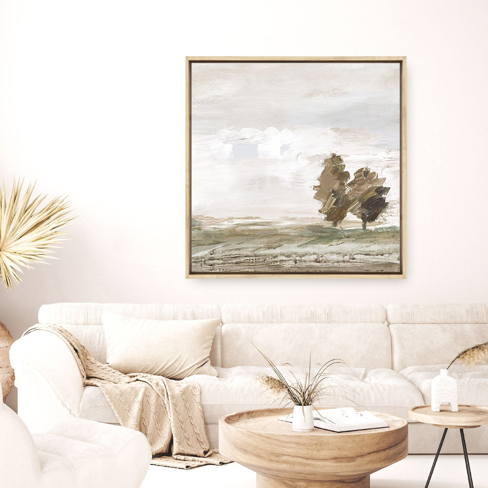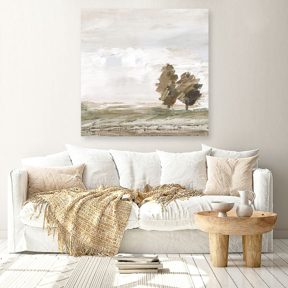 Shop Morning Crisp I (Square) Canvas Wall Art Print by Lera and update your wall decor at home easily with this neutral toned landscape themed artwork piece from our hand painted prints collection.