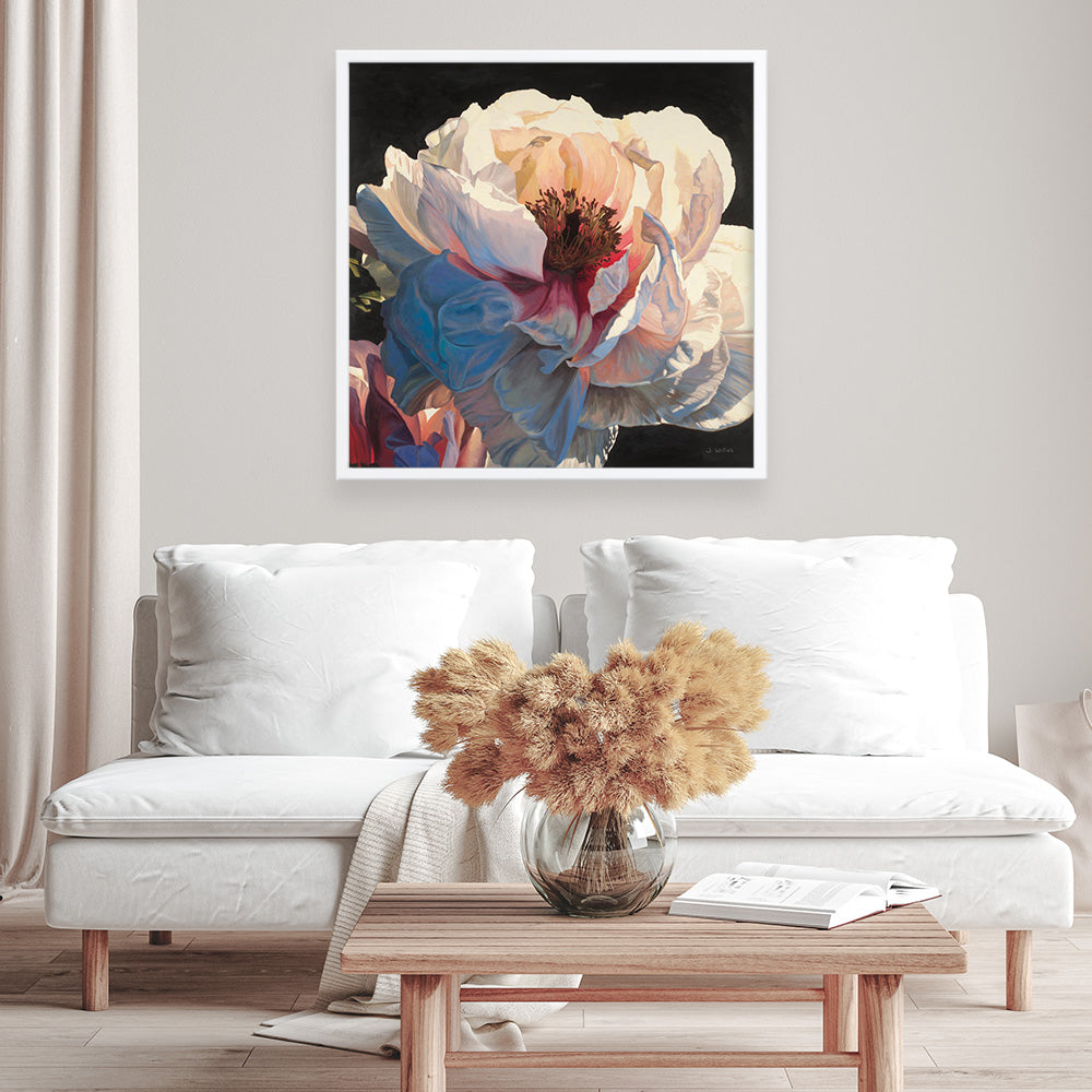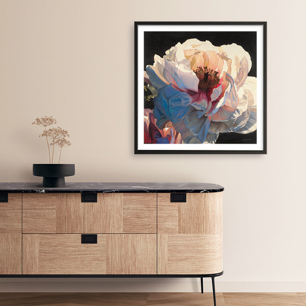 Shop Morning Glow I Art Print by James Wiens and update your wall decor at home easily with this beautiful peony flower artwork print from our hand painted prints collection.