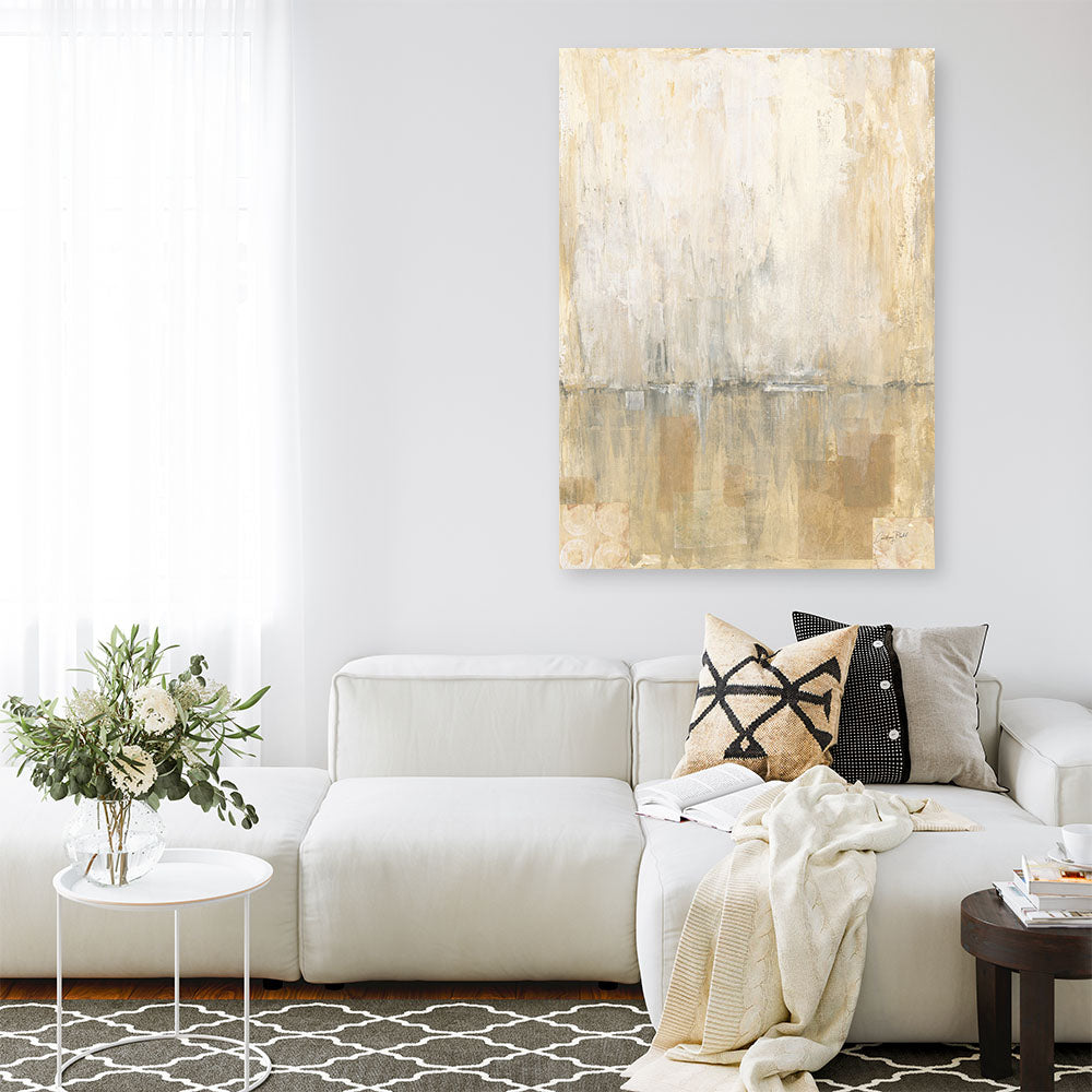 Shop Morning Light I Canvas Wall Art Print by Courtney Prahl and update your wall decor at home easily with this beige toned abstract themed framed canvas artwork piece from our hand painted prints collection.
