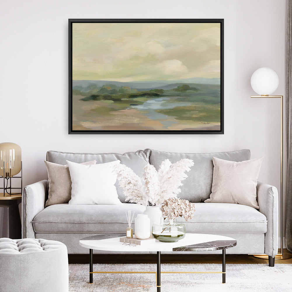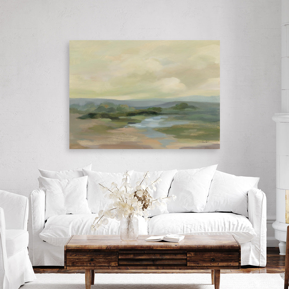 Shop Muted Green Landscape Canvas Print by Silvia Vassileva and update your wall decor at home easily with this neutral toned landscape from our abstract hand painted print collection.