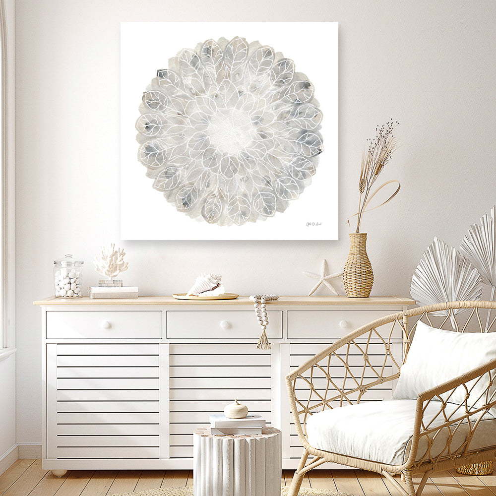 Shop Nature's Pinwheel II (Square) Canvas Wall Art Print by Yvette St. Amant and update your wall decor at home easily with this neutral toned floral abstract themed stretched framed artwork from our hand painted canvas print collection.