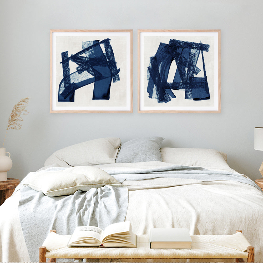 Shop Navy Paths I (Square) Wall Art Print by Cartissi and update your wall decor at home easily with this blue toned abstract themed artwork print from our hand painted prints collection.