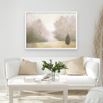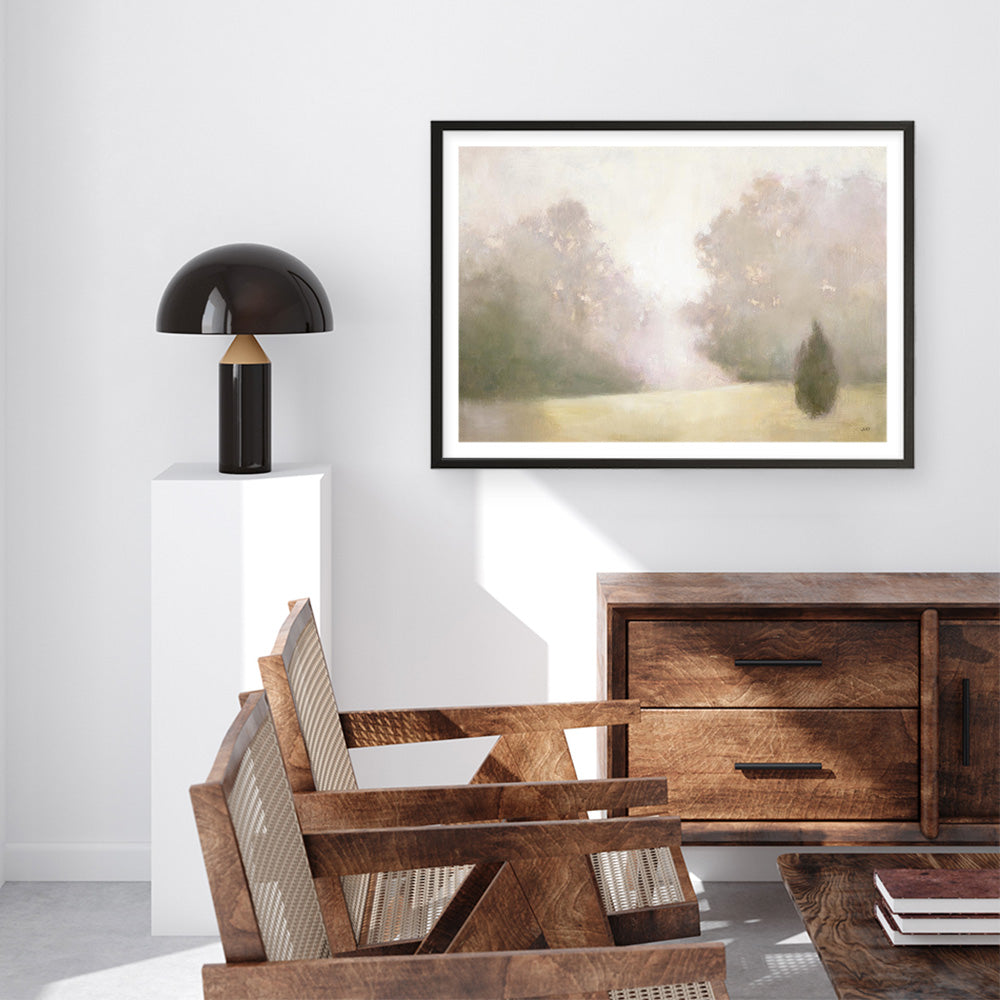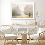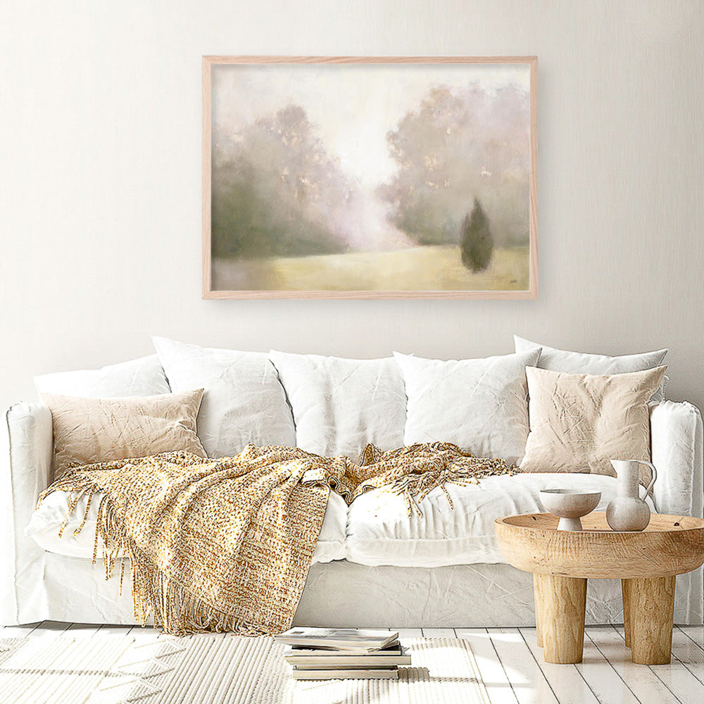 Shop Near Oaks I Art Print by Julia Purinton and update your wall decor at home easily with this misty view of a pair of oak trees from our abstract hand painted print collection.