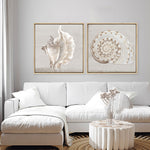 Shop Neutral Shells III (Square) Canvas Wall Art Print by Eva Watts and update your wall decor at home easily with this beige toned shell themed artwork piece from our hand painted prints collection.