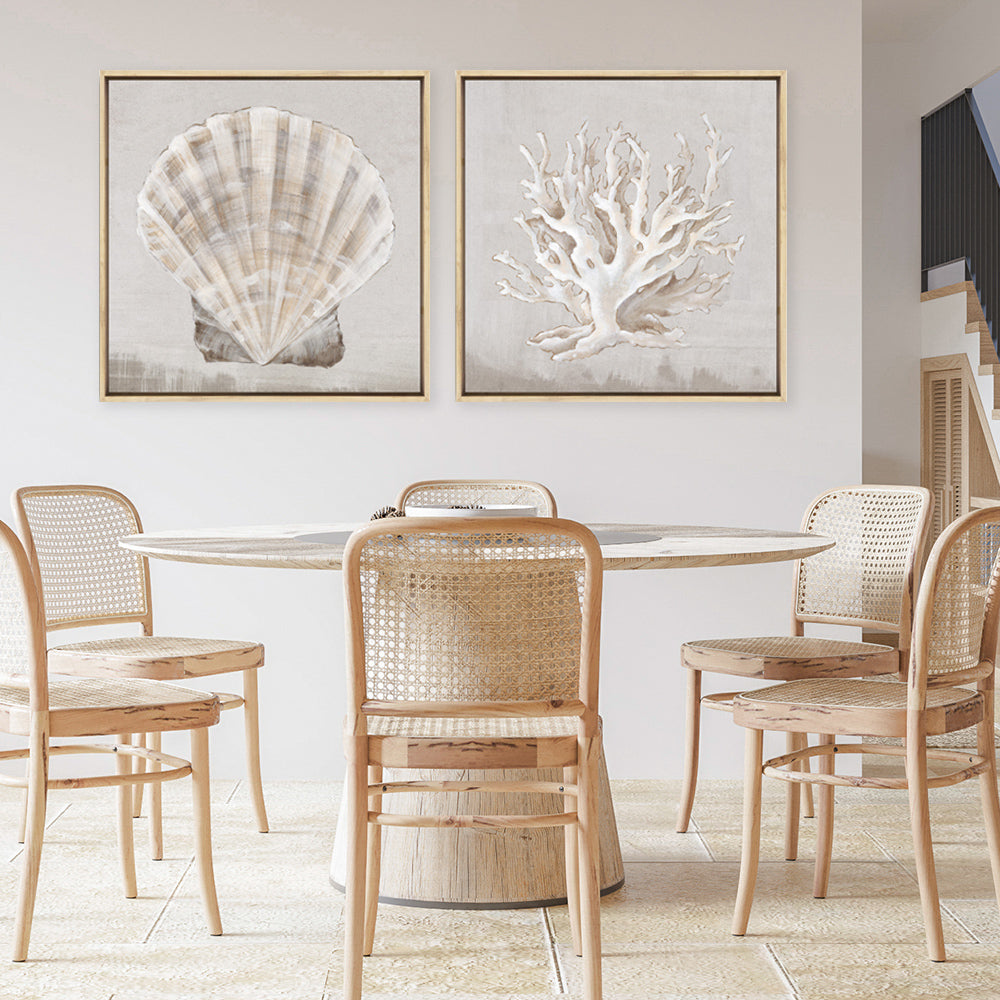 Shop Neutral Shells IV (Square) Canvas Wall Art Print by Eva Watts and update your wall decor at home easily with this beige toned coral themed artwork piece from our hand painted prints collection.