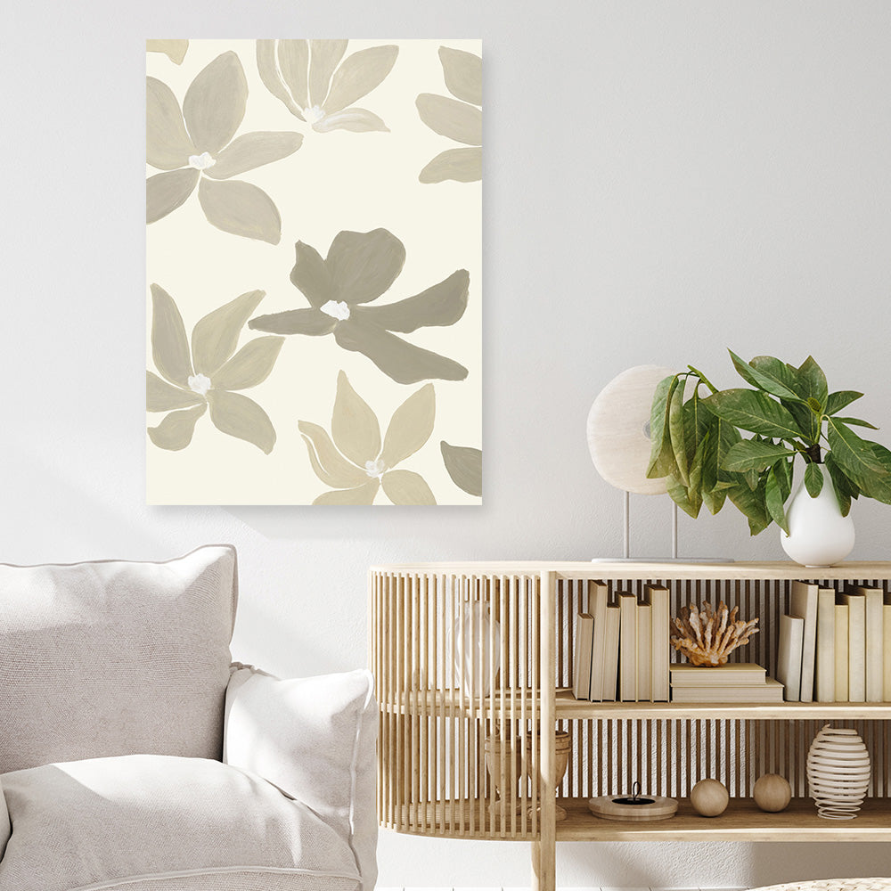 Shop Nostalgia 1 Canvas Print by Design Fabrikken and update your wall decor at home easily with this soft, neutral palette of cream, beige, and light brown artwork from our hand painted canvas print collection.