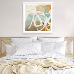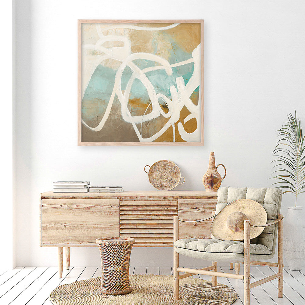 Shop Notify (Square) Art Print by Design Fabrikken and update your wall decor at home easily with this neutral and aqua-toned abstract square artwork from our hand painted print collection.