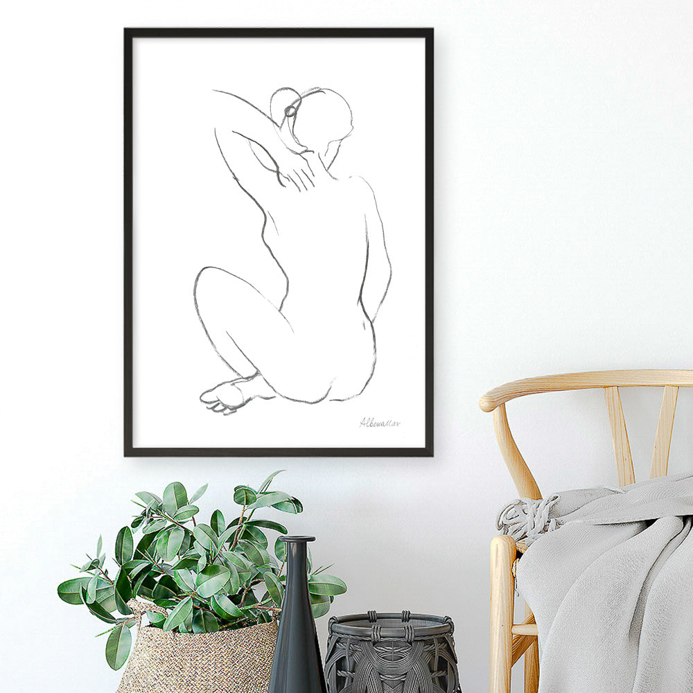 Shop Nude Sketch I Wall Art Print by The Print Emporium and update your wall decor at home easily with this figurative drawing of a woman themed wall artwork print from our hand painted prints collection.